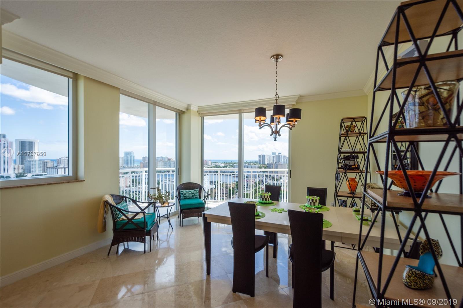 Beautiful corner unit featuring stunning unobstructed South East views where you can see the Ocean, City, Intracoastal, Golf and Gulfstream Park. The unit features an extensive open floor plan, wrap-around terrace, marble/wood floors, built-in closet system, pull out pantry cabinets, crown molding shades and much more!