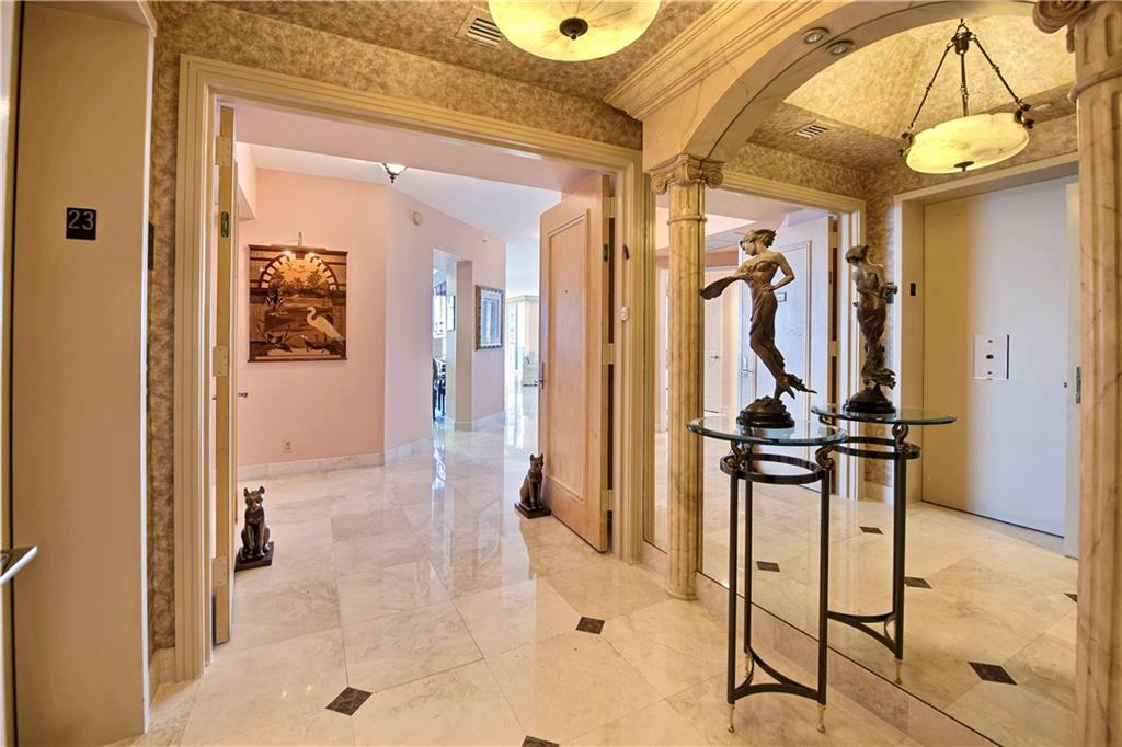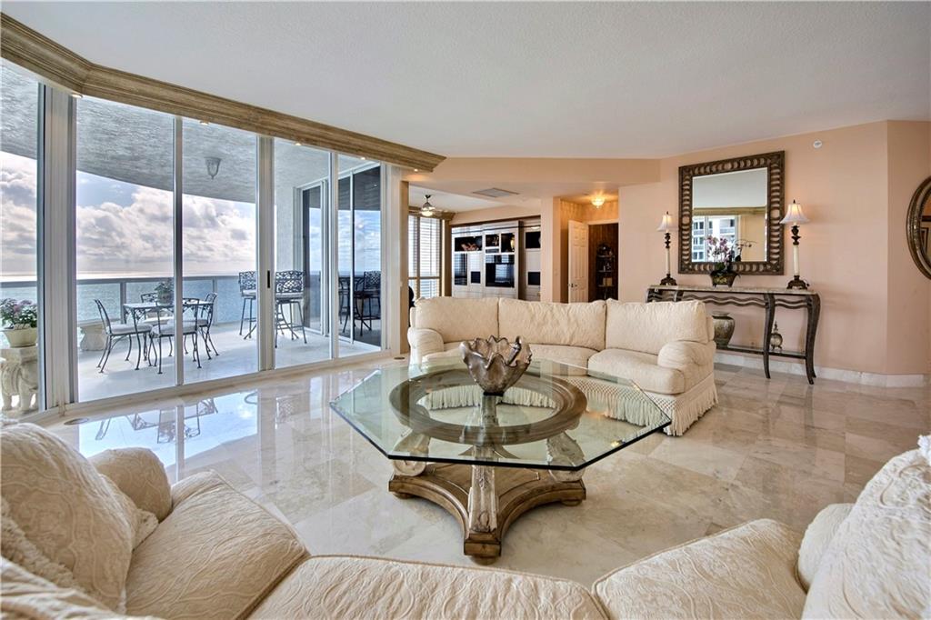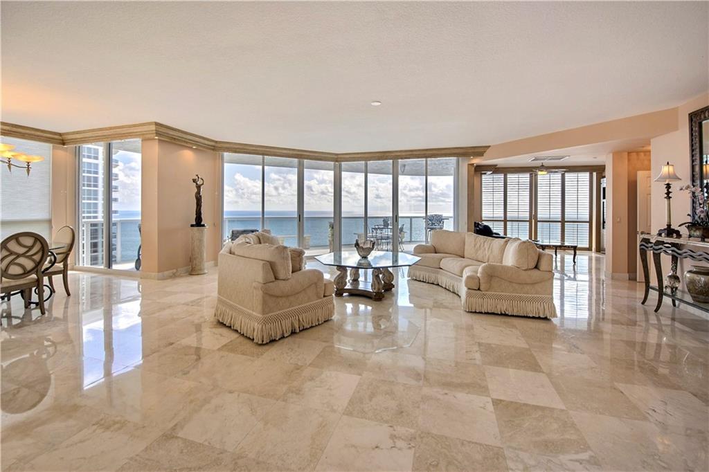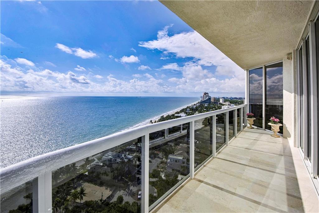 Paradise in the sky with cruise ship views. Immerse yourself in the Fort Lauderdale Beach lifestyle with an exclusive high floor Brittany residence at L'Hermitage's over 10 acres of oceanfront resort-style complex! This is the largest single unit in L'Hermitage Building 1. New stainless appliances. Marble flooring inside and out. Large Master with 2 baths and 2 walk in closets. Private elevator, private foyer, and 2 separate zone AC units/water heaters. Resort-style complex has been upgraded with new lobbies, landscaping, fitness centers, patio/beach furnishings, grill area, pet walk, entrance, valet and concierge areas. 24/7 Gated and Secure grounds with private guards and electronic key access to amenities. This complex also includes an attended beach with canopy seating at the ocean!