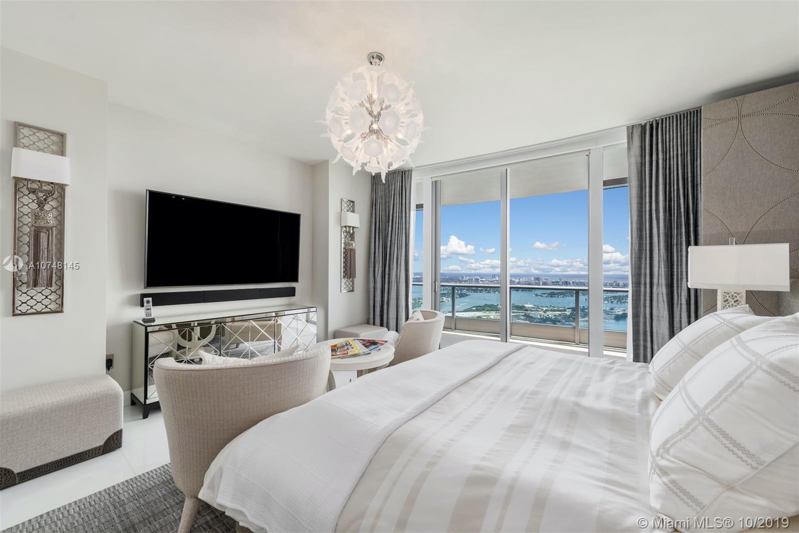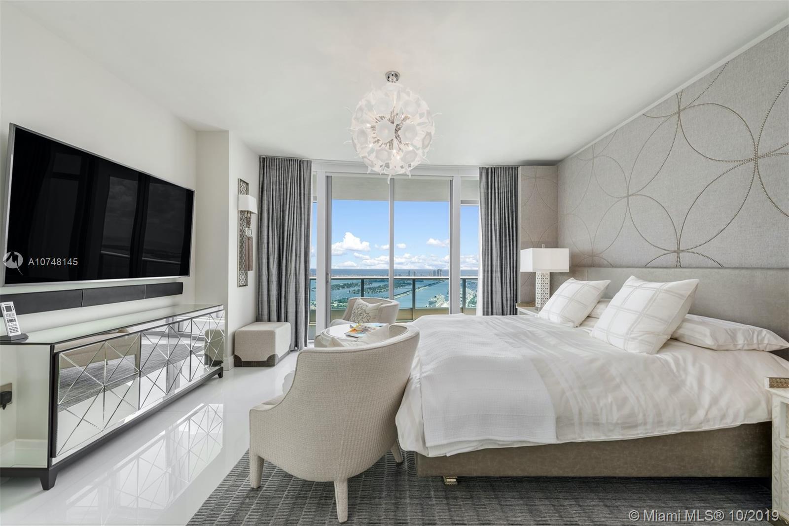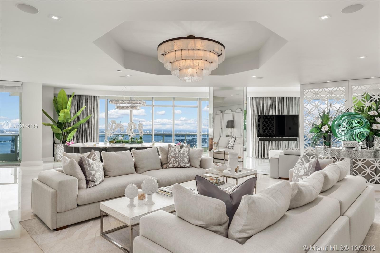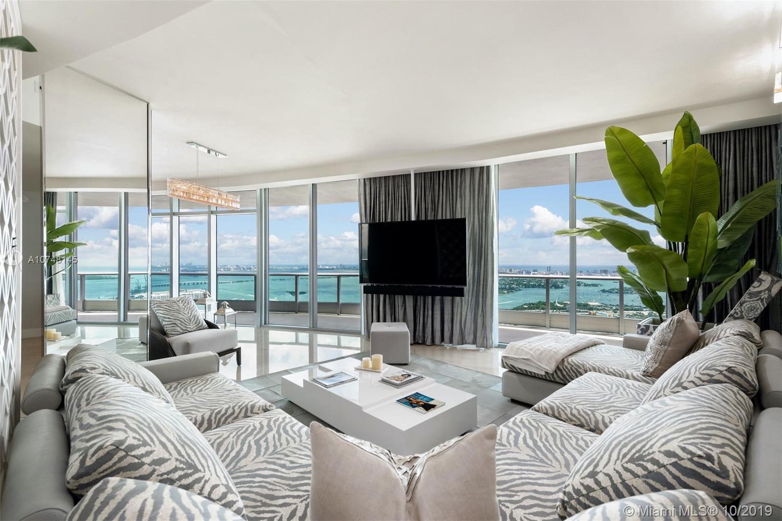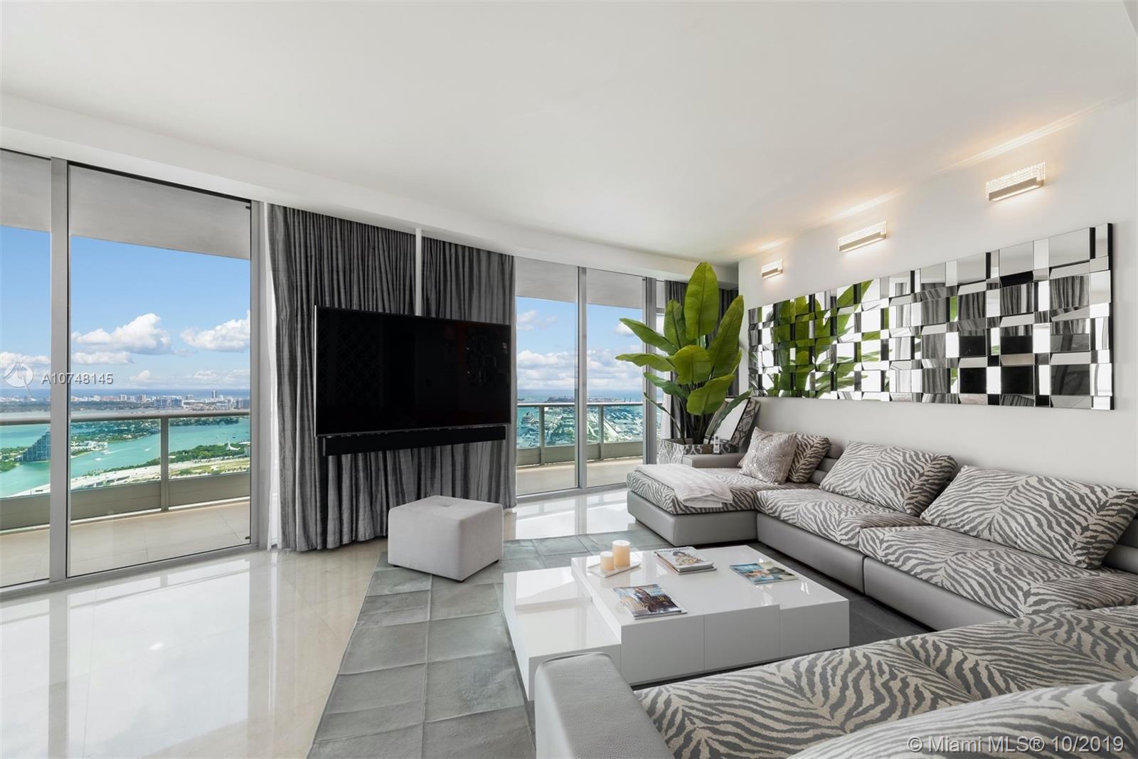 An immaculate, gut-renovated MASTERPIECE w/ over $1.5MM spent in renovations, furnishings, & electronics; 3,500+ sq ft of interior living space; 3 Beds+Media Room; 3.5 Baths & 3 terraces totaling 1,000 sq ft. This mansion in the sky offers sweeping views of the ocean, bay, Miami Beach skyline, cruise ships & sunrise from the 61st floor. Enjoy a home cinema experience like no other w/ a 100" smart TV, Dolby Atmos surround sound & Kaleidescape system for true 4K Ultra HD playback. PH6107 features brand new designer furnishings & finishes w/ no expense spared; a Savant Pro smart home system; linear diffusers throughout; custom Italian kitchen by Aran Cucina; 36x36 marble floors in main living areas; smart beds; Toto toilets & master bath sanctuary w/ Moroccan tile, steam room, & jetted tub.