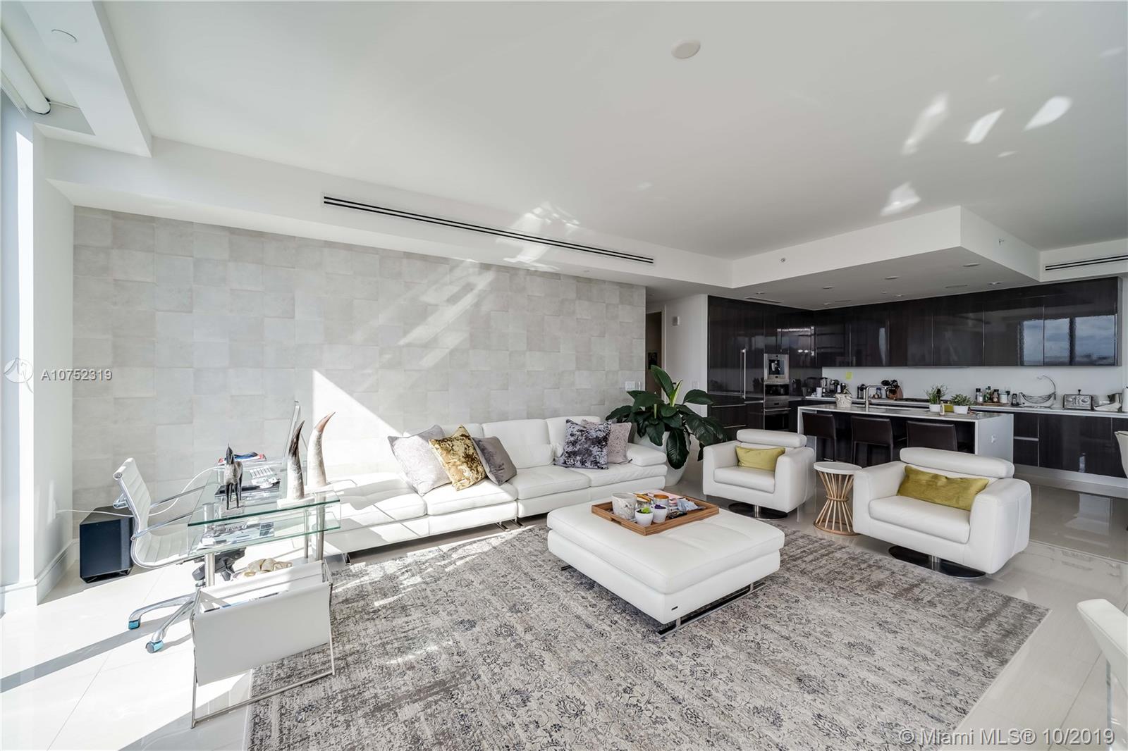 Gorgeous designer corner unit beautifully finished with private elevator and huge storage. Gourmet kitchen with Italian Cabinetry, top of the line appliances. Spacious terraces with summer kitchen/bbq to enjoy the amazing ocean, city and intracoastal views. 5 acres bay-front lot with luxury amenities infinity pool, state of the art gym, yoga studio, pet walking services, pool, beach club, concierge, cafe/restaurant with poolside food and beverage service, limousine and bicycles services valet. Minutes from Aventura Mall, beaches, Bal Harbour & airports.