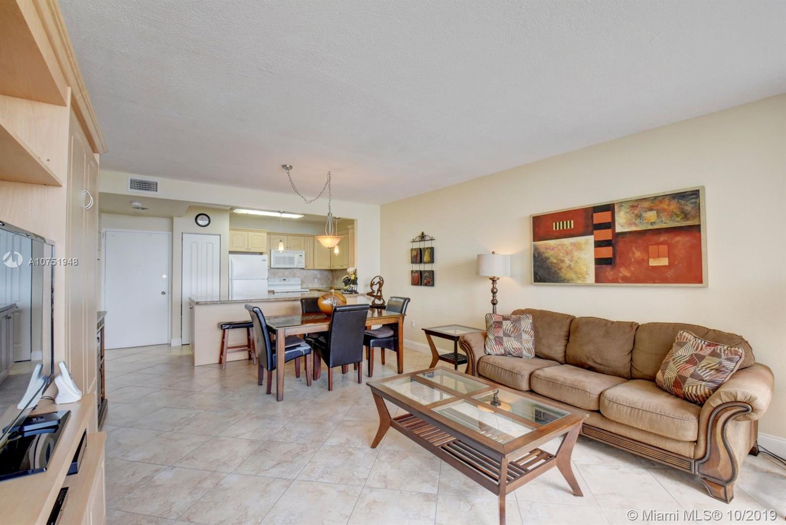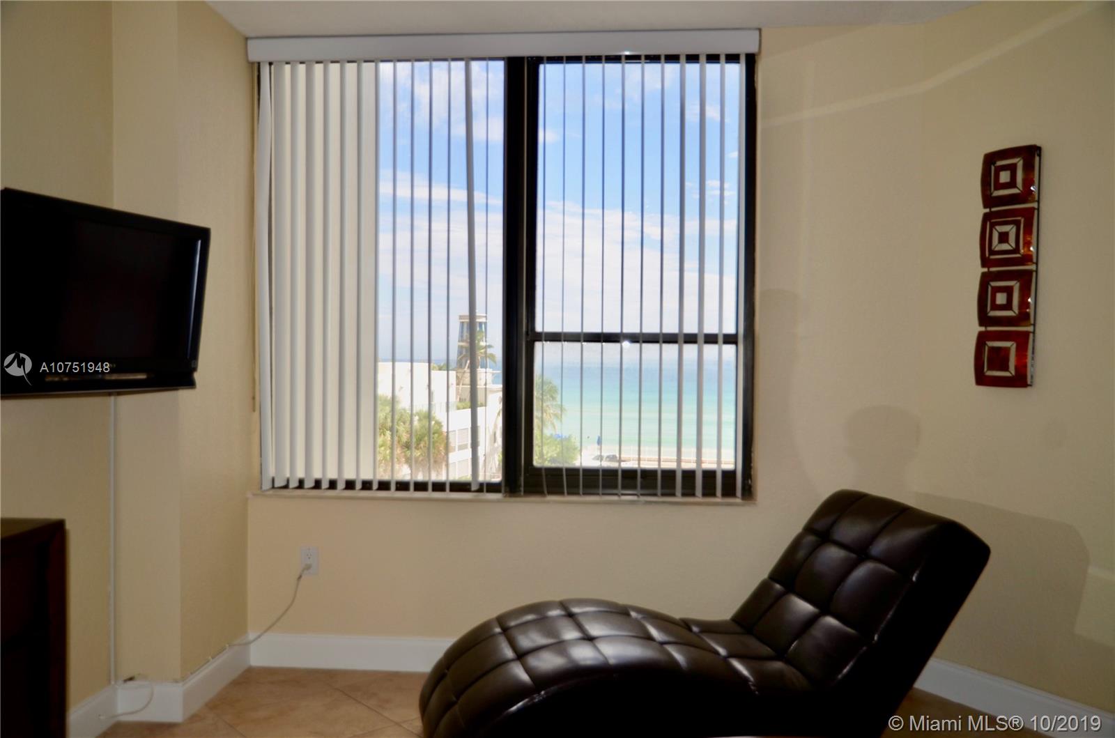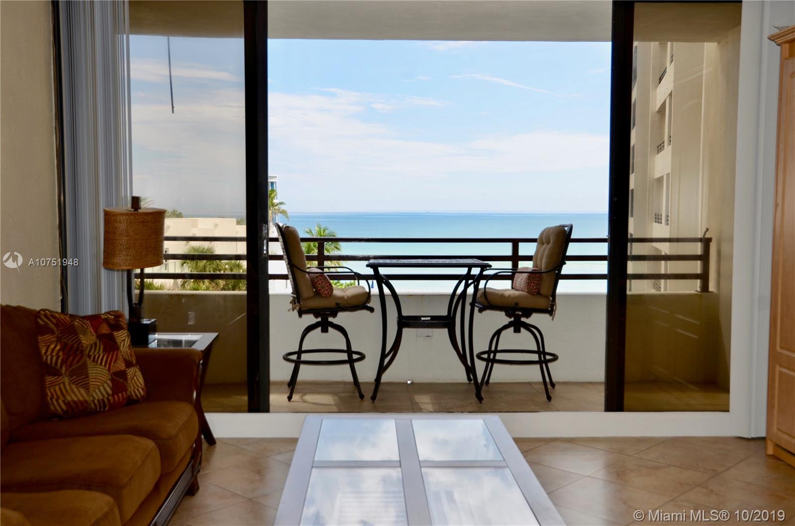 Beautiful unit directly on Hollywood Beach with magnificent views of the Ocean. As soon as you open the door of this unit, you will see the blue of the ocean from everywhere. Open kitchen with granite counter top, tile floor throughout, and remodeled bathrooms (1.5). This bright & spacious condo will sell all furnished and turnkey. Direct and Private access to the beach, heated pool, fitness center, security 24/7 and valet parking. Come see that great views that you can get when you are cooking, entertaining or watching tv. Perfect for the beach lover. You can also rent monthly & right away, close to the Gulfstream, Hollywood Downtown, all the restaurants and stores. The only 1&1.5 with direct Oceanview for sale, don't mis it!