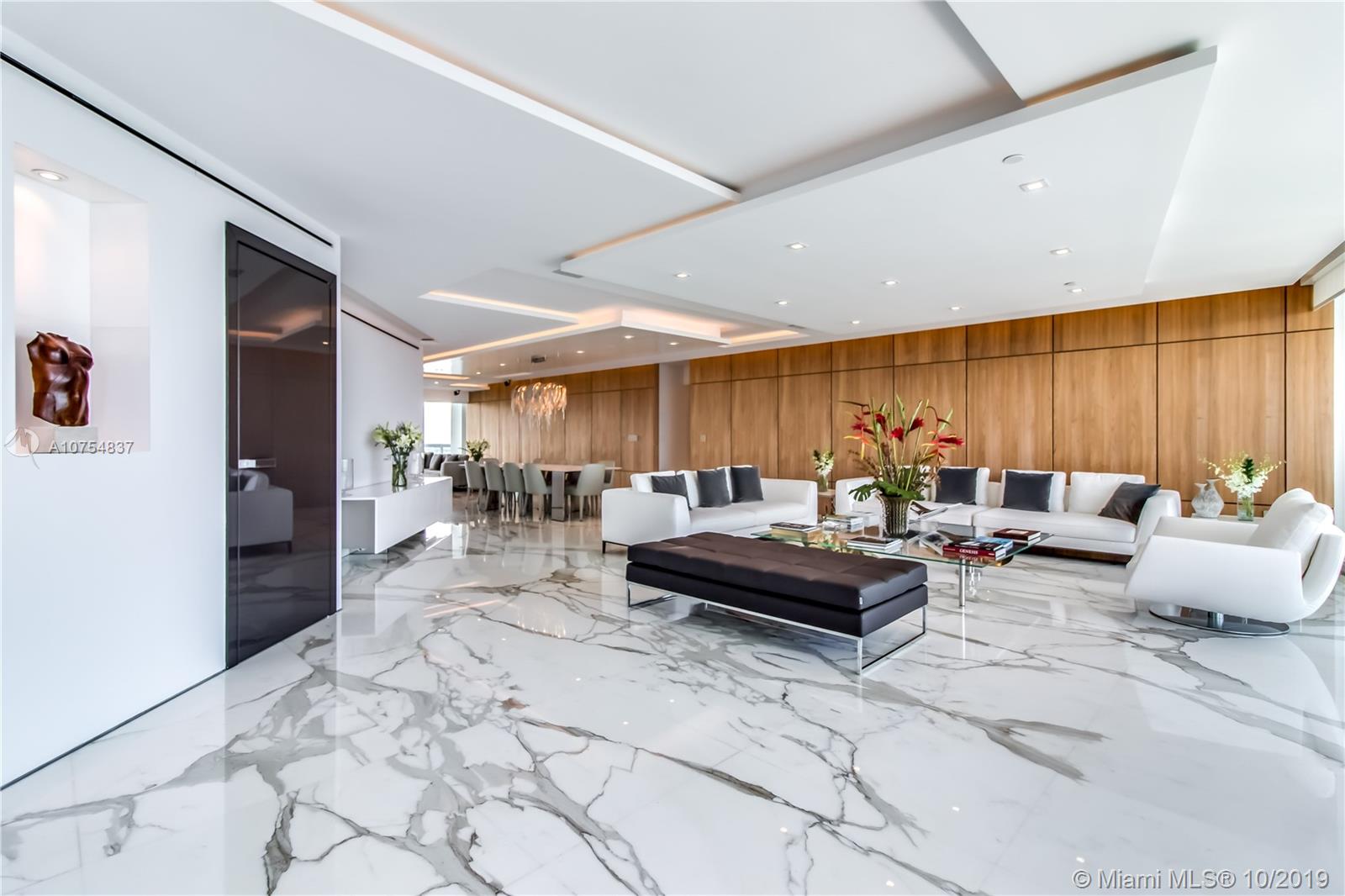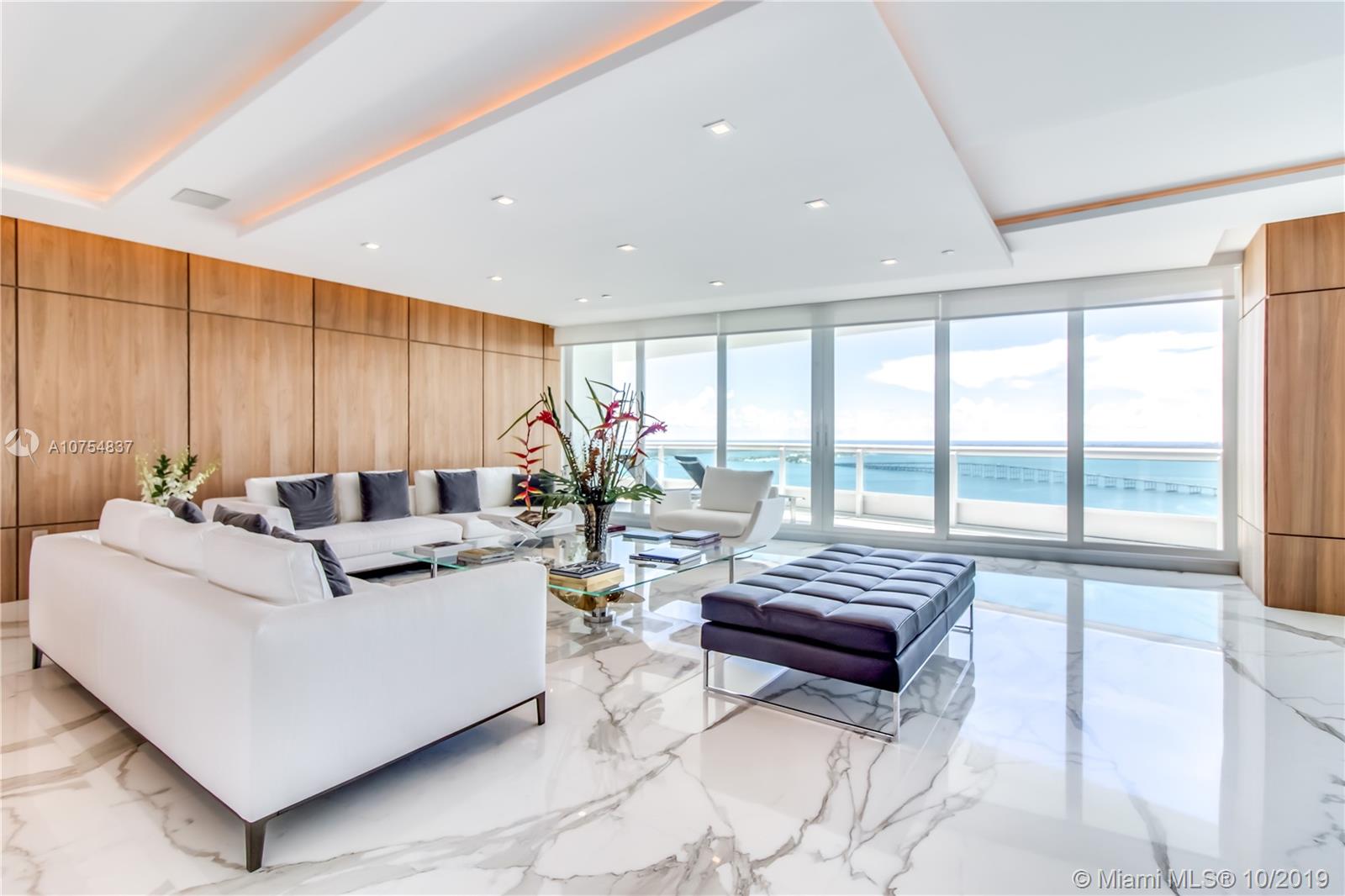 Outstanding renovation and re-design for this remarkable residence. The private foyer opens to a sun filled, flow thru living area offering views of the water and the City. High impact doors and windows, high ceiling with custom design and lighting. Poliform kitchen & baths. Calacatta gold marble & noce wood floors, Poliform custom paneling, master suite with his/her closets and his/her bath, 2 additional superb en suite bedrooms & staff service area. Large terraces on either side. This is truly a one of a kind unit.