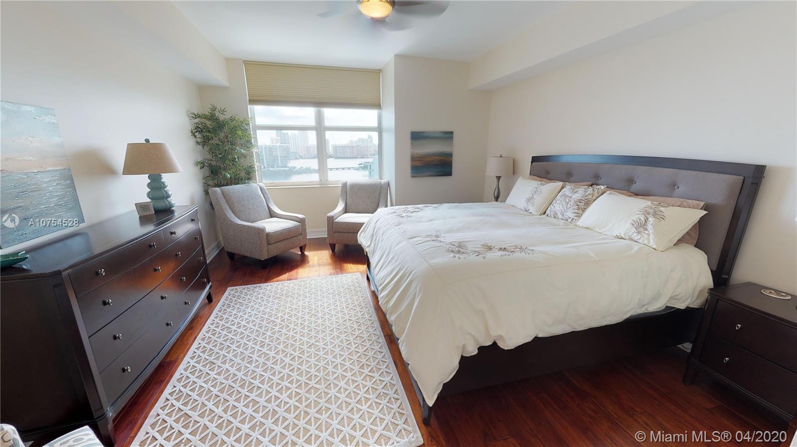 Beautiful remodeled condo is one of the best in Aventura Marina II. The expanded gourmet kitchen has stainless steel appliances, Italian cabinets, under cabinet lighting, granite countertops and an extra large refrigerator/freezer. Bedrooms have hardwood floors and the master walk-in and second bedroom closets have built in organizers. The master bathroom has a glass shower and all three bathrooms have frosted glass doors. Laundry room has a full size washer/dryer and built-in storage cabinets. The unit also has an open den, 4 ceiling fans and comes with Two Deeded garage parking spaces. Some of the amenities are a great fitness center, two pools, hot tub, billiard room, cable TV, water and internet. All furnishings can be included. Walking distance to Founders park, Aventura Mall.