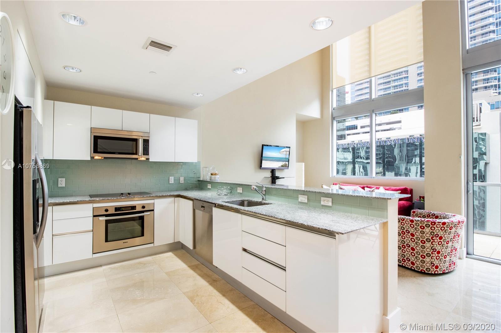 Light-filled, large 1 Bedroom, 2 full bathrooms loft. 1,147 Sq.Ft. Spacious layout, open kitchen, washer/dyer closet, big storage closet downstairs, two closets in upstairs bedroom, and terrace. Views of the Brickell Avenue corridor and the bay. Great building amenities: swimming pool, fitness center, hot tube, club room with catering kitchen, virtual golf simulator, massage room and billiards room. Prime location