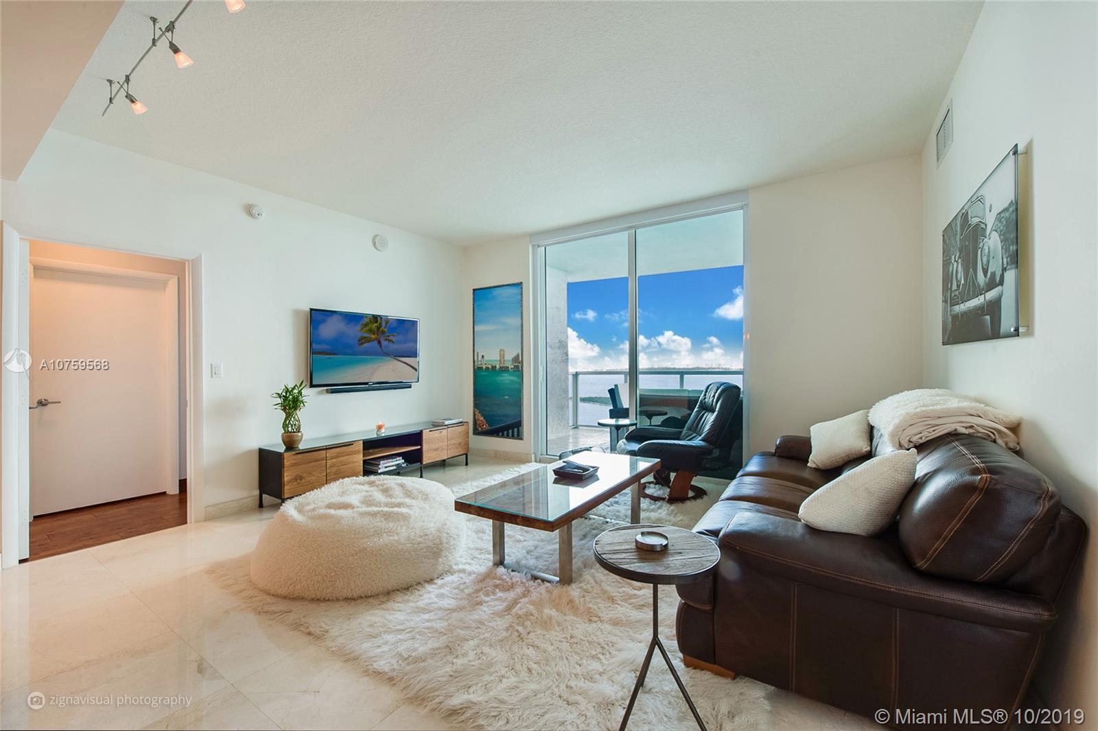Gorgeous direct East water views from every room of this completely remodeled 2, 2.5 + den, 1378 SF luxury waterfront unit at Quantum on the Bay in Edgewater. Best line in the building - SE corner 01 with extended private wraparound terrace & perfect split floorplan layout with double master bedrooms, walk-in closets & private baths. Immaculate & loaded with custom upgrades throughout: floor-to-ceiling impact glass, tons of natural light, 24x24 carrera marble & wood flooring, modern/european kitchen with granite & s/s appliances, custom bar & lighting, glass showers, motorized blinds, LG W/D, covered parking & more! Premium location next to all Miami has to offer & on a beautiful waterfront park with 5* amenities: 2 pools, gym, bball, tennis, volleyball, security, front desk, valet & more!