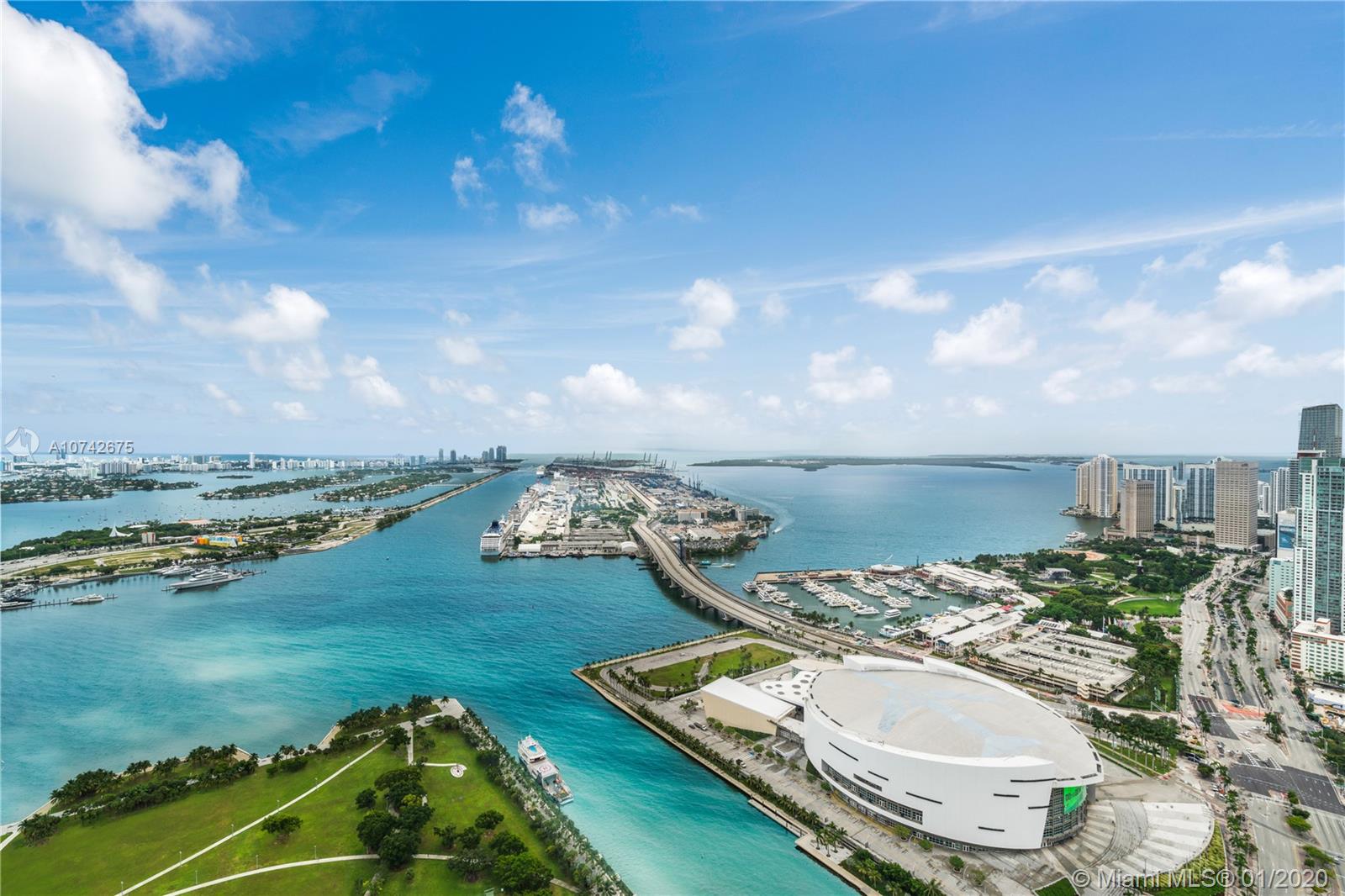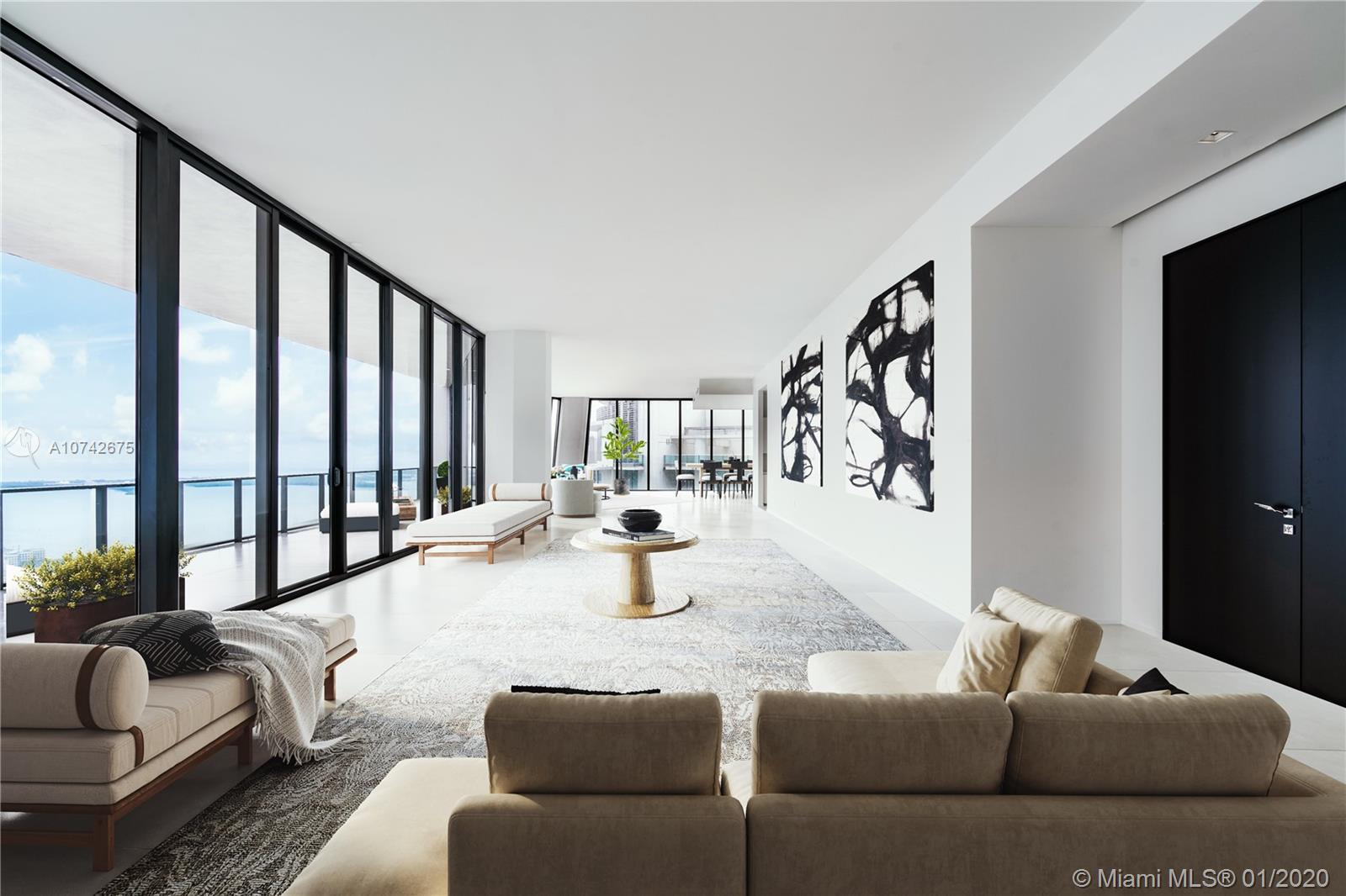 A true mansion in the sky atop One Thousand Museum, a triumphant expression of great design by legendary architect Zaha Hadid. This full-floor, 9,910 sq. ft. penthouse has impressively proportioned spaces, highlighted by 12 foot ceilings, and the 86x26 foot great room. Terraces offer arguably the most spectacular views in Miami, combining bay, city, ocean, and endless blue sky. Attention to architectural detail is meticulous. Every interior door has custom-designed handles by Ms. Hadid, and the unique engineering created sweeping interior spaces. Extraordinary amenities offer a bespoke lifestyle tailored to each resident, from the five-star spa with customized personal training to the indoor and outdoor pools, the private lounge offering aperitifs, and of course the rooftop helipad.