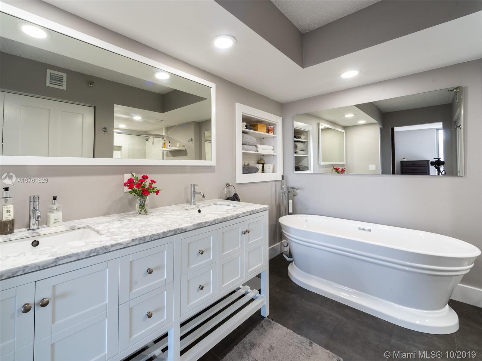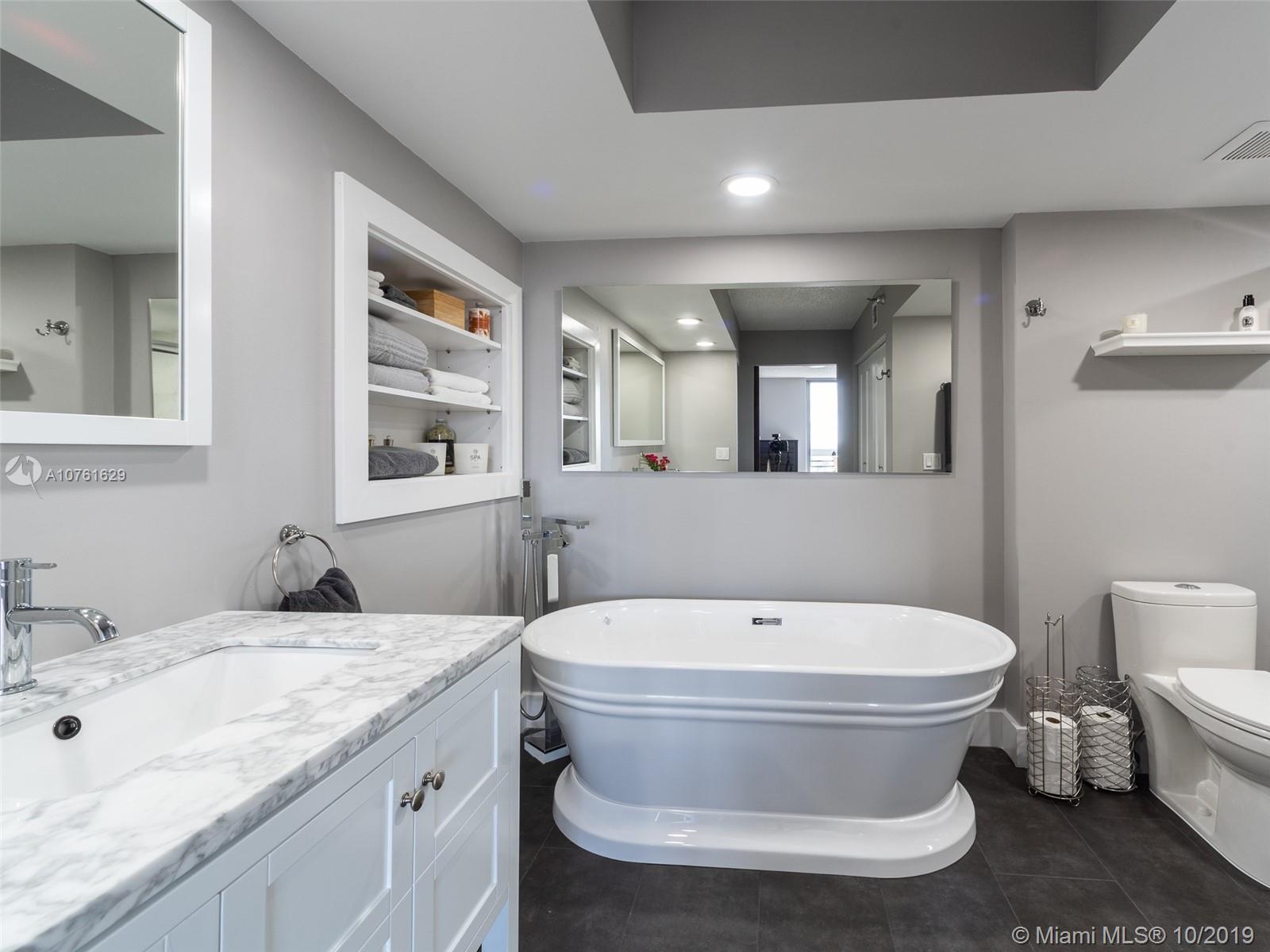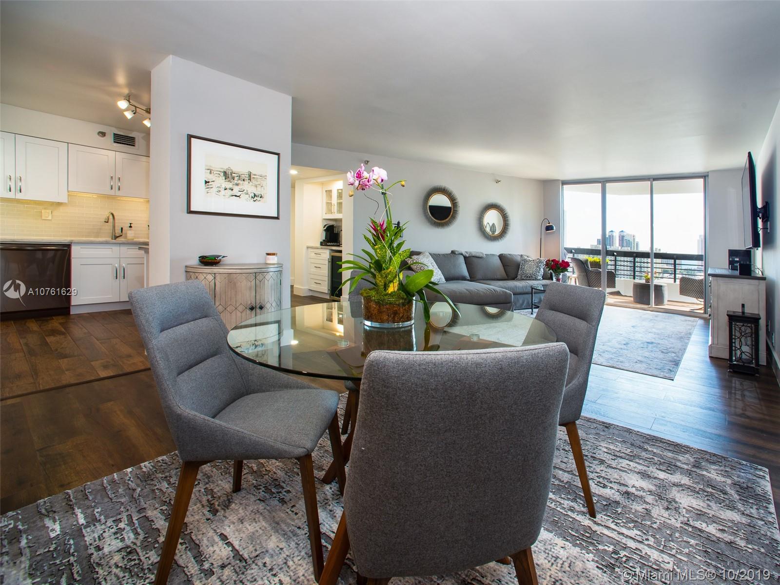 Must see 2 bed/2 bath in Mystic Pointe completely remodeled! All new floors, doors, bathrooms, kitchen wth wall oven, dry bar with refrigerator, closets, appliances and fixtures. The entire condo was stripped down to the concrete and redone--nothing left untouched. Amazing water views of ocean and intracoastal from every room. Enjoy amazing amenities such as 24 hour guarded ate entry, door staff, valet, pool, fitness, tennis and more all in amazing location! Easy to show!