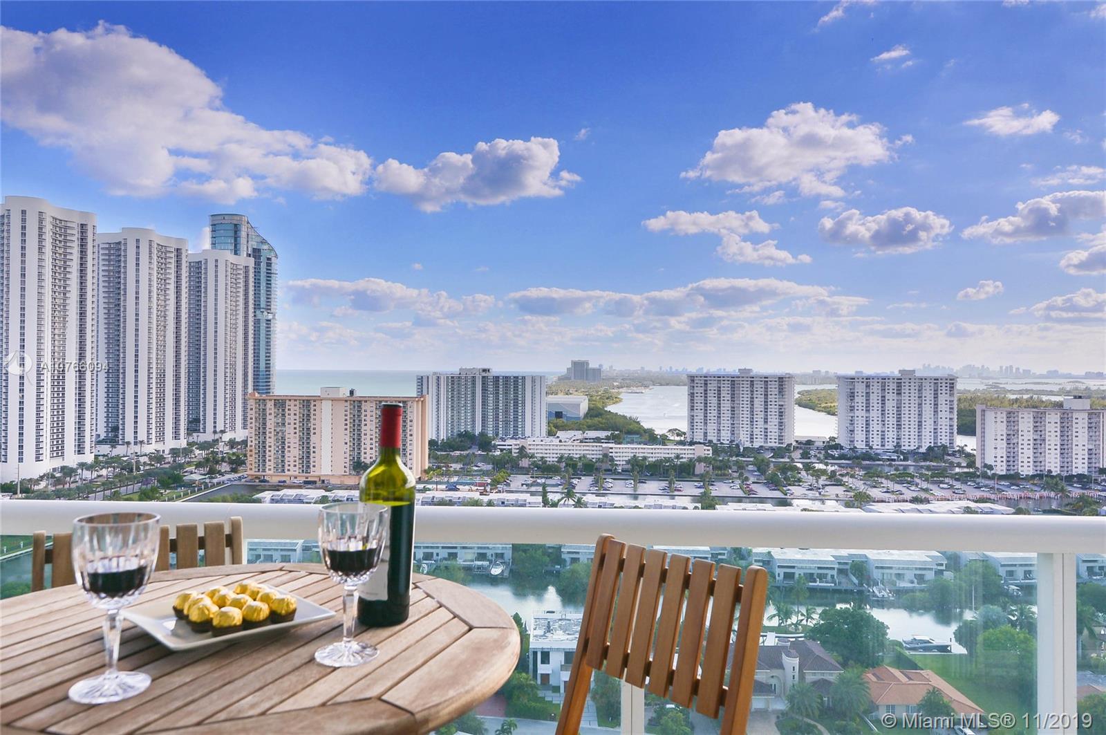 PRICE INCLUDES AIR-CONDITIONED POOL CABANA WITH FULL BATH & 2 PARKING SPACES. Enjoy panoramic views of the Intracoastal and Oleta River State Park to the west, ocean views to the east and the downtown Miami skyline to the south. The residence features high ceilings, beautiful polished marble floors, den with sliding glass panels, large open balcony and full hurricane shutters. Luxury resort like amenities including a private beach club with food and bar service, fitness center, cardio/weight training room, aerobic studio with daily spinning, yoga, pilates and Zumba dance classes, 2 oceanfront restaurants, beauty salon and tennis courts. Marina slips available for rent or purchase. Vacant and easy to show.