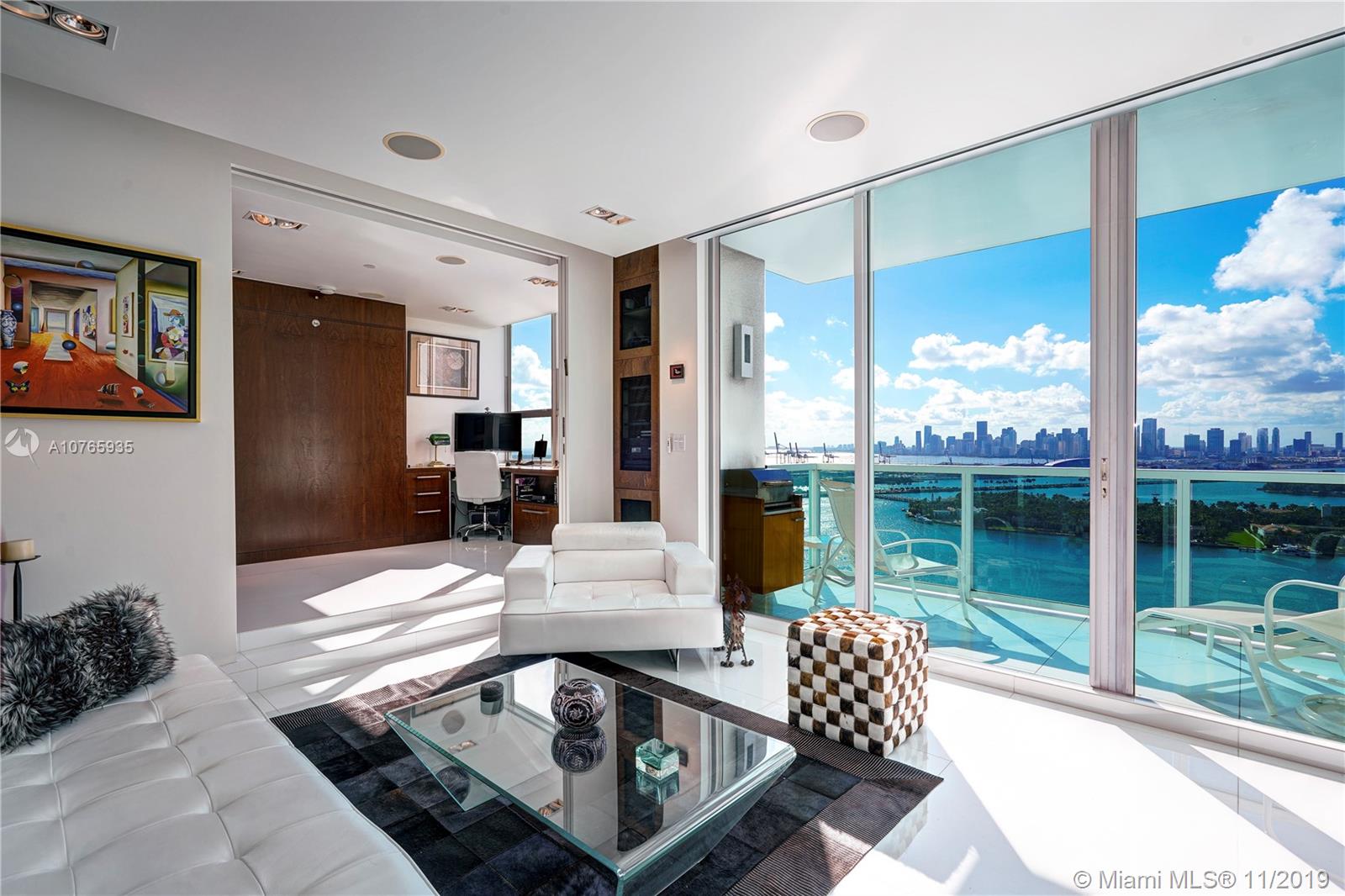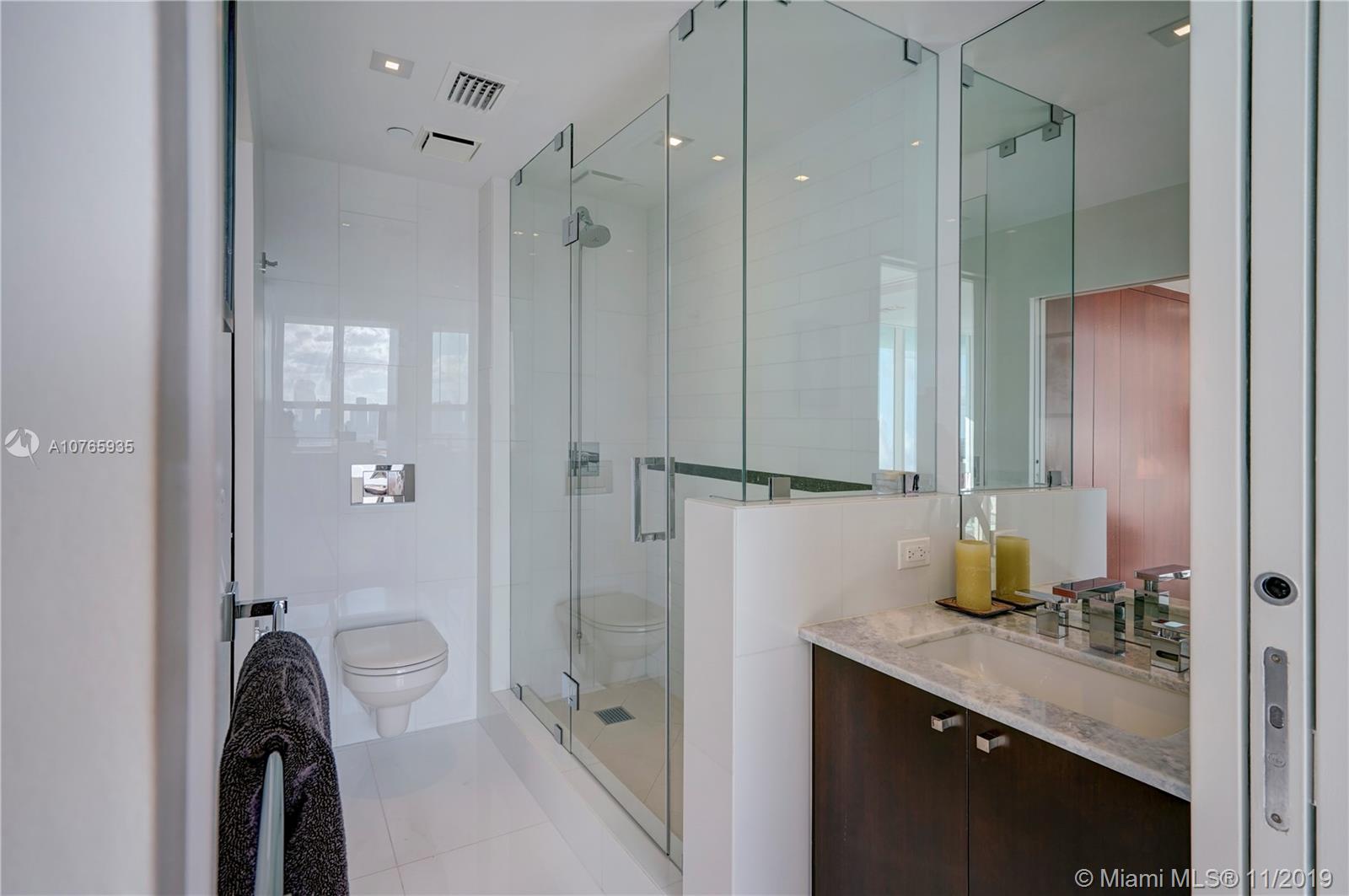 Wow! One of a kind Condo at The Floridian on the 31st Floor. No expense has been spared in this totally Renovated Condo. From the moment you walk in you see the high-end finishes and unobstructed water views throughout. From the Spacious Kitchen which includes Miele Appliances & Sub-zero to the Formal Dining room to the amazing Master Suite to the 2nd bedroom which can be used as an office or bedroom with its murphy bed. Built-ins, Custom Closets, Recessed Lighting, Spa Bathroom & more. Amenities: 2 pools, gym, tennis, spa, grocery store, valet parking. Near the Beach, Whole Foods, & Joe's Stone Crab. Less than 15 minutes to airport & easy access to Arts & Entertainment District. Future development Baywalk Connector Bridge designed by Arquitectonica which will connect to South of Fifth.