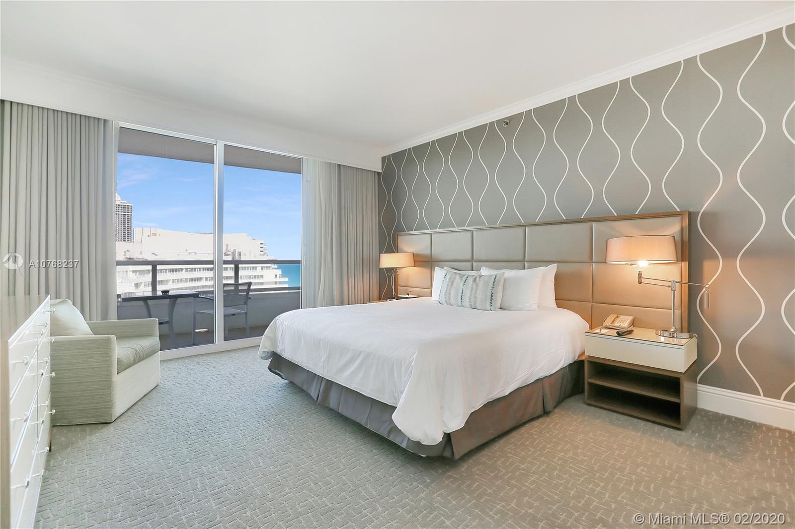 Beautiful 1 bedroom/2 bath with ocean & bay views at the Fontainebleau II. Enjoy full service, vacation-style living in a furnished turnkey unit with king bed, sleeper sofa +more. Enroll in hotel rental program & receive income while away! The Fontainebleau Resort offers luxury amenities on 22 oceanfront acres including award-winning restaurants, LIV night club, Lapis spa & state-of-the-art fitness center. Maintenance fee includes: AC, local calls, electricity, valet + daily free breakfast in the owner’s lounge.