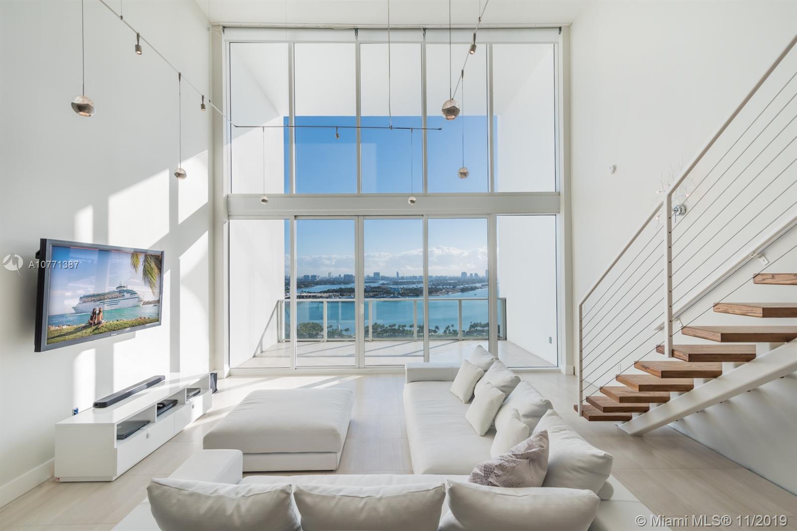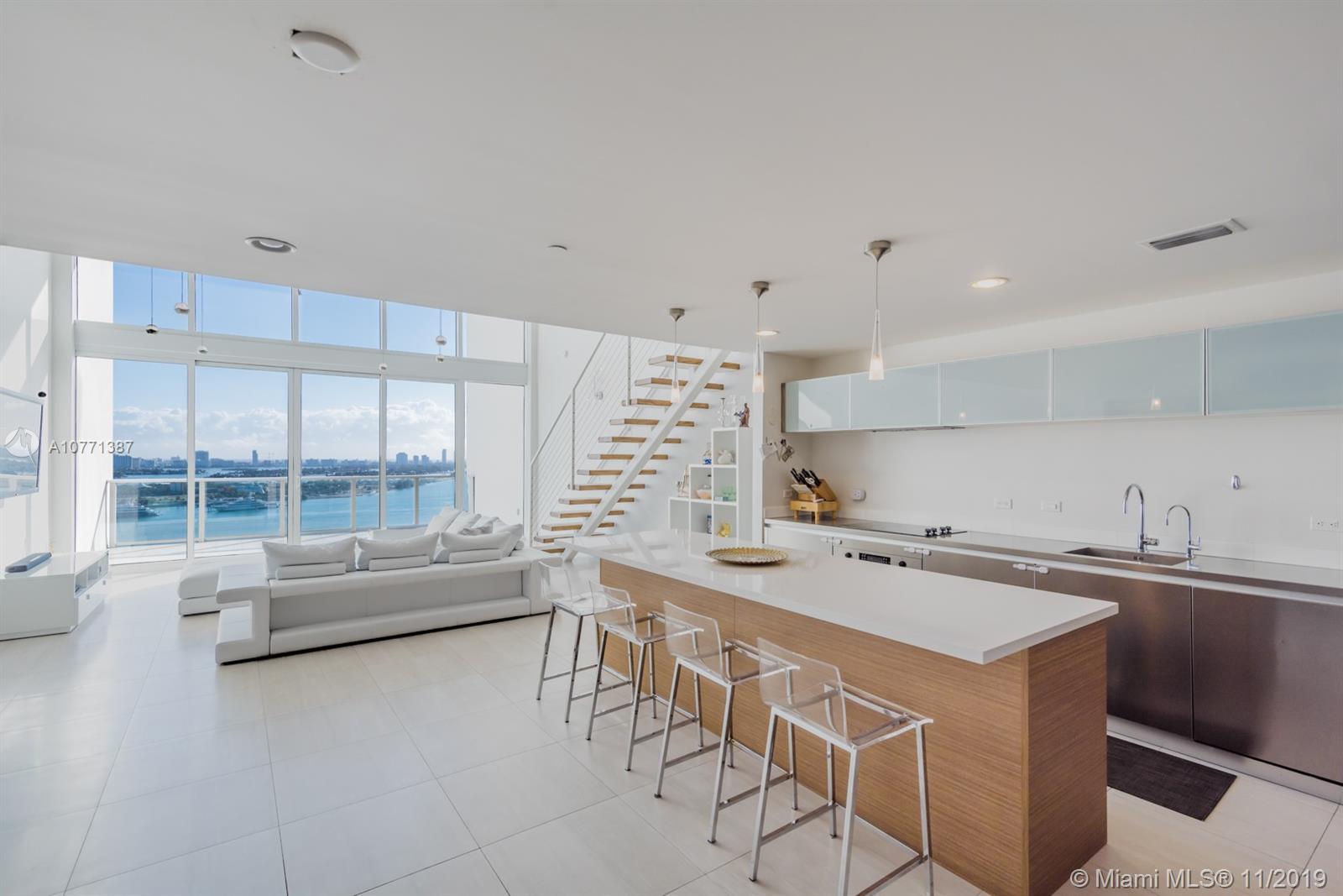 Modern living at its best in the cultural center of the city! This 1,802 sq.ft. 2/2.5 sky loft w/ 20' walls of glass offers stunning views of Museum Park, Biscayne Bay, South Beach and the Miami skyline. This loft is finished to perfection with porcelain flooring throughout, fully S/S kitchen w/ Miele, Sub Zero and Bosch appliances. This home includes such upgrades as motorized solar shades, full-sized Miele washer & dryer and an amazing kitchen island. Included with this unit is air-conditioned storage and two parking spaces. TMP is a full-service building with 24-hour concierge, the Clinique La Prairie Spa, full gym and cardio room, five swimming pools, security and all of the amenities of a true luxury high-rise in Miami.