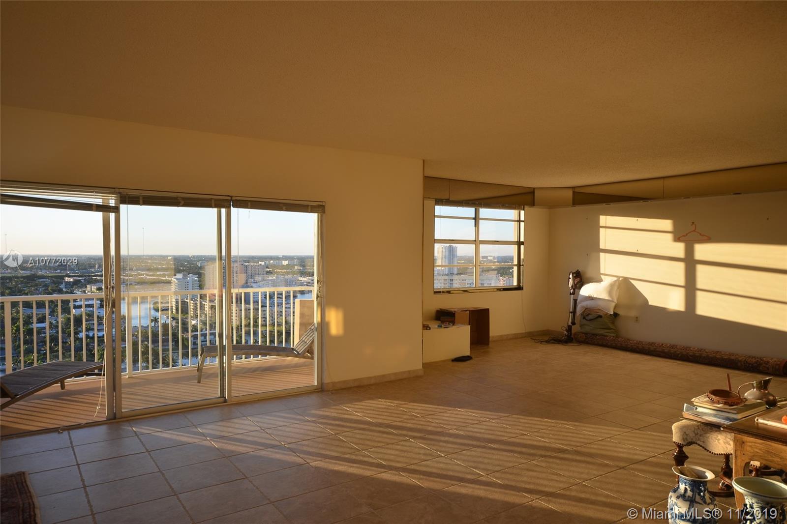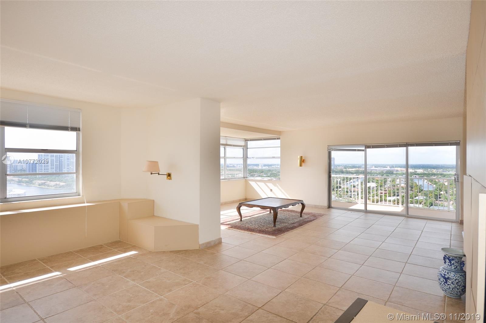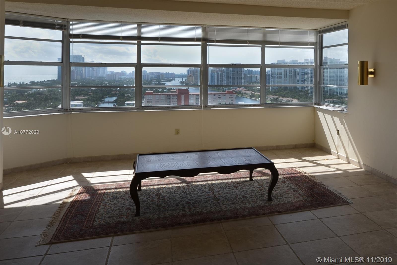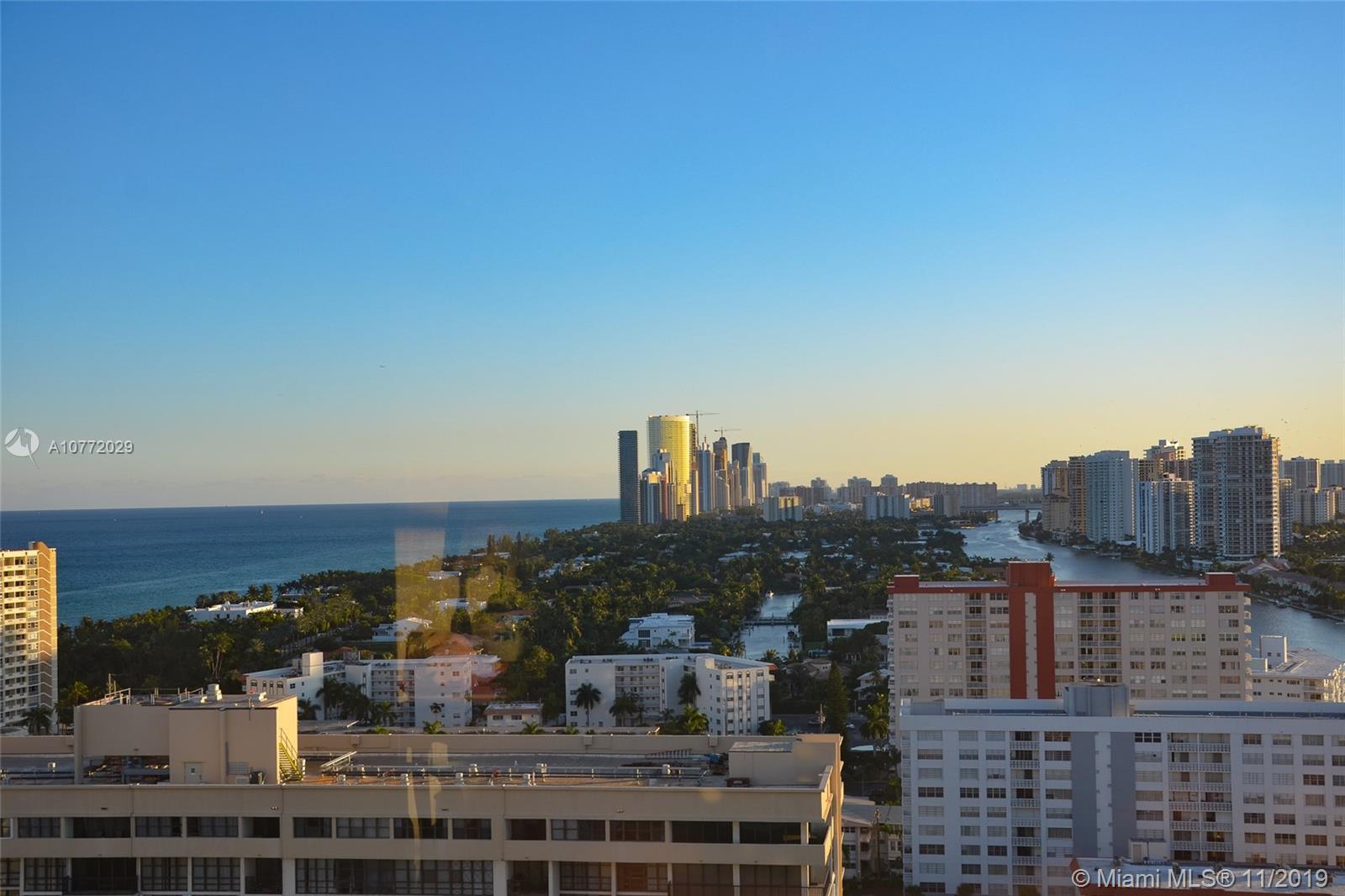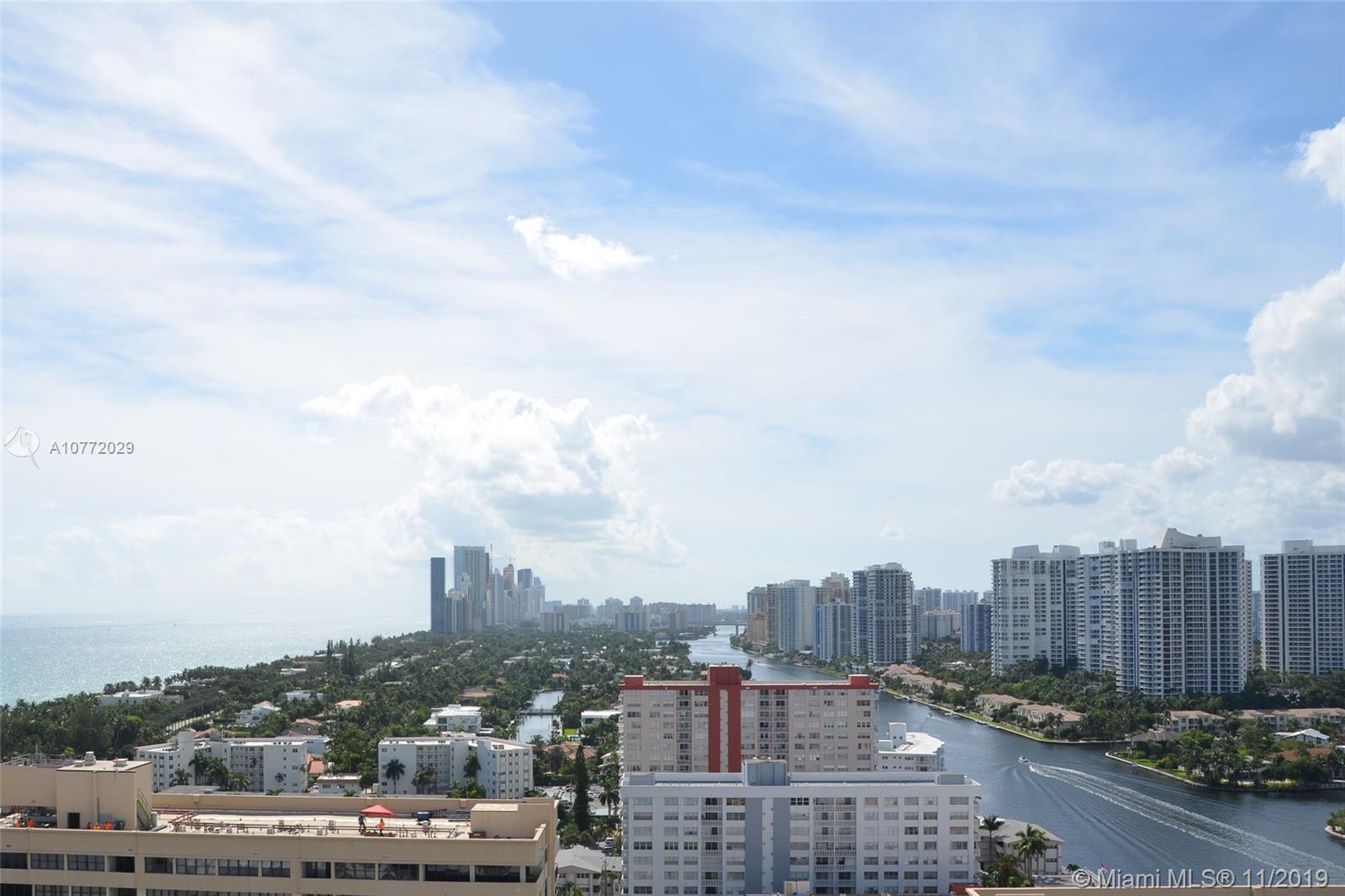 Unobstructed views from Intracoastal to the Ocean plus City. Spacious corner unit 1780 sq. ft. Located on the Intracoastal. Breathtaking sunsets and sunrises. Air Conditioning included. Walk across to the Beach. Covered parking, spacious bright unit with large balcony. The building has many amenities including valet parking, 2 restaurants, 2 heated oversized pool, snack bar by the Ocean, beauty salon, beach service, convenience store, tennis courts, putting green, driving range, marina with boat lifts, gym, sauna and steam rooms, 24-hour security and shuttle service. Close to casinos, racetrack, Aventura Mall, shops and so much more. In between Miami and Ft. Lauderdale Airport.