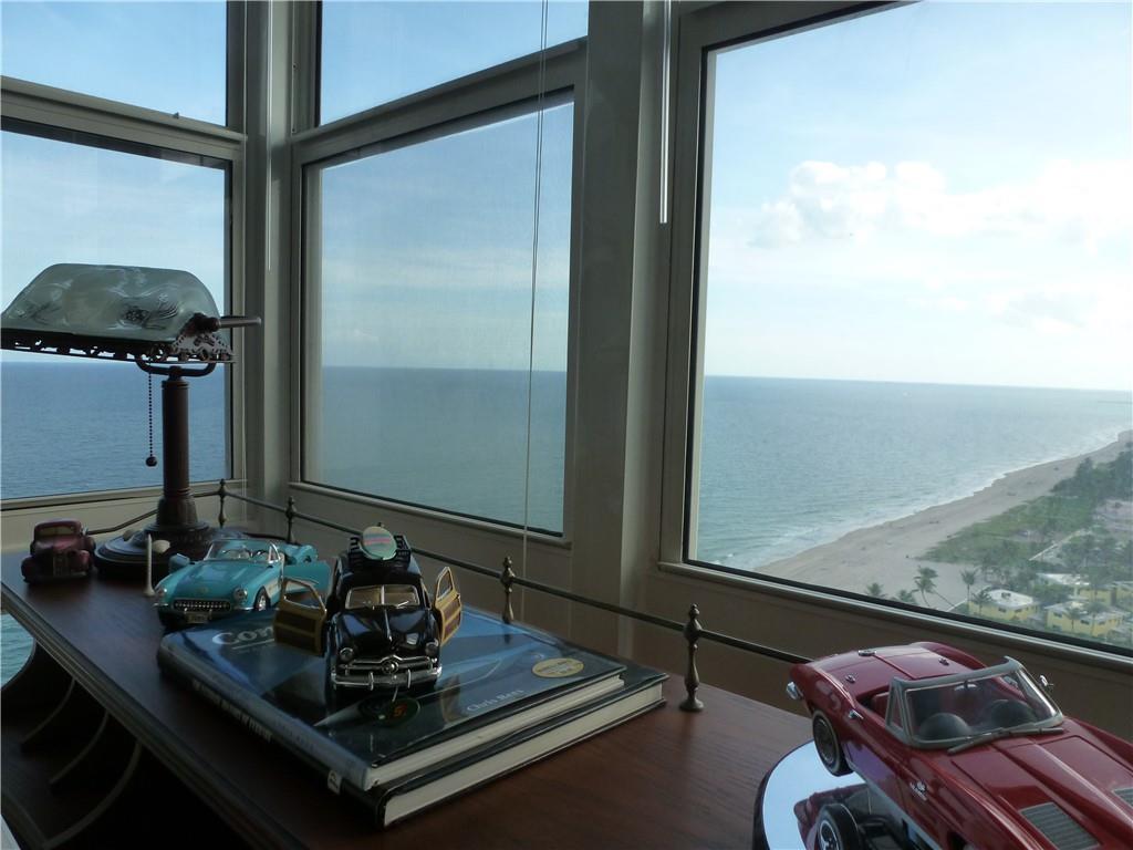 South facing 2/2 with great ocean, beach views and dramatic city lights at night all the way to Fort Lauderdale. Updated bathrooms, master has dual sinks and updated kitchen with cooking island/snack bar, attractive cabinetry with recessed lighting, recent Bosch ventless washer / dryer. Impact glass on all windows and balcony door. Master bedroom has beach and direct ocean view. Offered furnished, some exclusions. Building has undergone extensive renovation in recent years. Beach side Pool, tennis,hot tub, BBQ area, walk out the building and step on the sand and into the surf. Gyms and saunas. f tennis and unique sky lounge on the 28th floor where you feel like being on a ship and gaze out over the ocean to the horizon. Hoses on W/D & DishW changed to stainless braided lines,