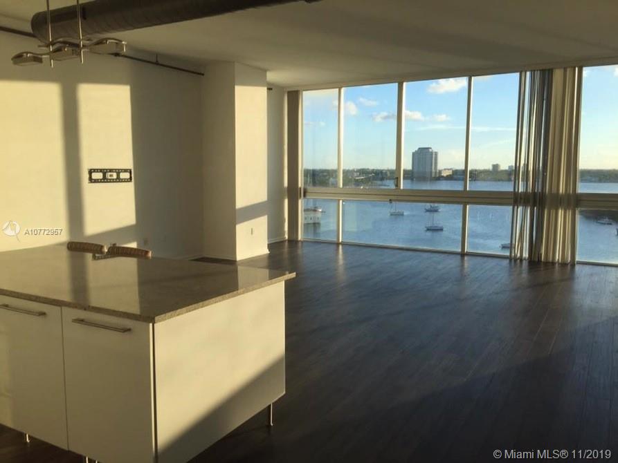 Stunning large, modern 2 bedroom/2 bath open concept loft with 12ft ceilings, 1848sq ft spacious floor plan, central AC, dark grey laminate wood flooring throughout and a new washer/dryer. Both bedrooms have walk in closets with an extra storage cabinet in the main bathroom. Floor to ceiling windows overlook west facing view of bay and gorgeous sunsets. Space 01 is a unique, award winning design building with creative and professional residents. Located in North Bay Village, this condo is conveniently located less than 15 min to downtown, Midtown, South Beach and Aventura. Amenities include heated rooftop swimming pool with jacuzzi spa, rooftop garden, full fitness center and secure covered garage parking for 2 vehicles.