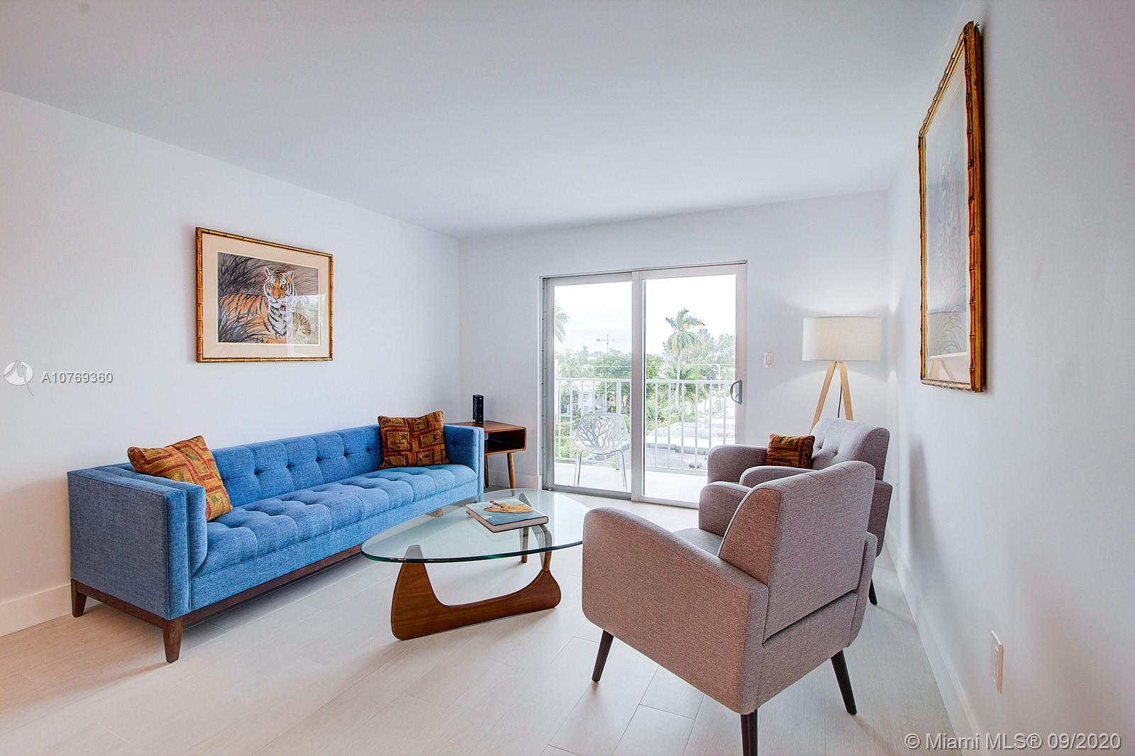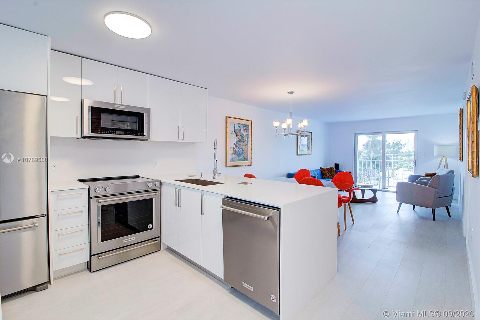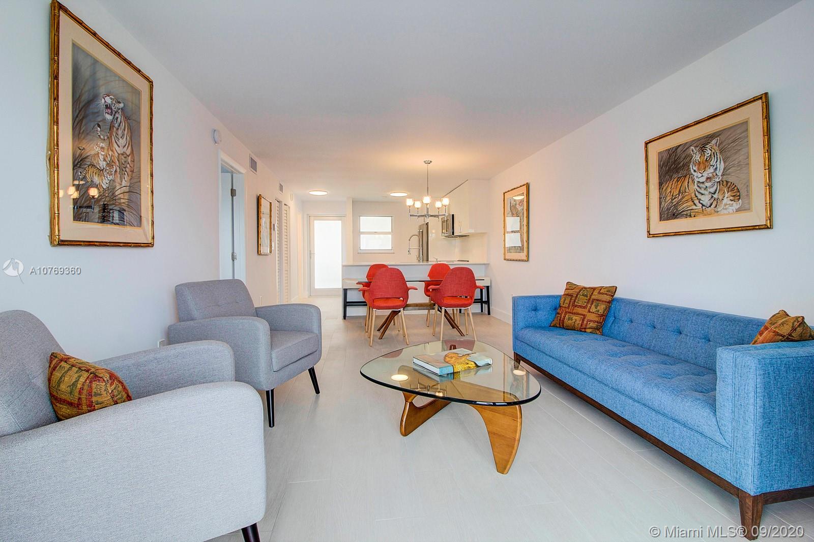 Furnished spacious 1 bedroom 1.5 Bath located in the heart of South Beach. Completely Remodeled in 2019 with top General Contractor and permits! All new walls, ceilings, porcelain tile flooring, high end Kitchen Aid stainless steel appliances, white quartz counter-tops, back splash, pantry, new lighting fixtures, large closets. NEW Hurricane impact windows and doors. This spacious residence boasts tons of natural light throughout. Unobstructed views of skyline, facing South. Parking available, by waiting list assigned by building and low maintenance fee. Close proximity to Lincoln Road, Ocean, Flamingo Park, and tons of restaurants and shops. Updated Boutique building with stylish lobby. Just bring your flip flops and tooth brush. Furnishings included! SOLD TURNKEY! Easy to show