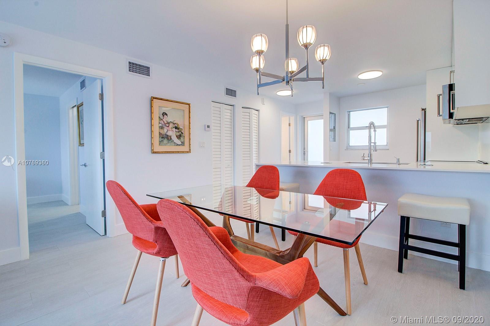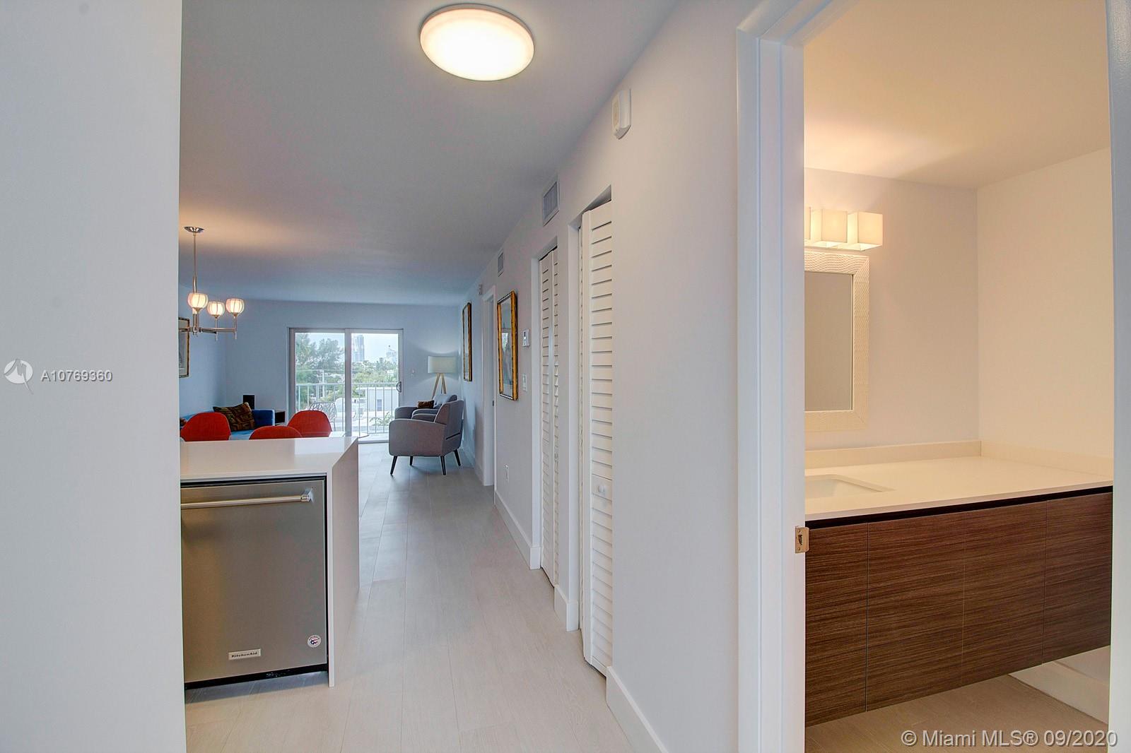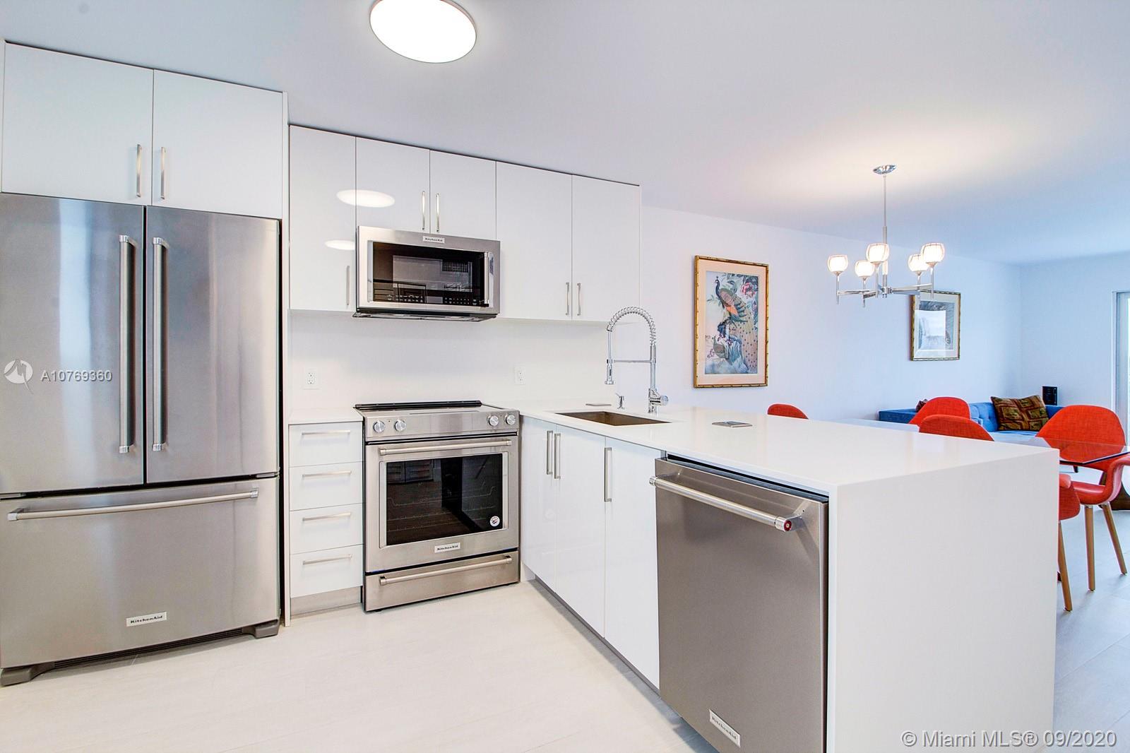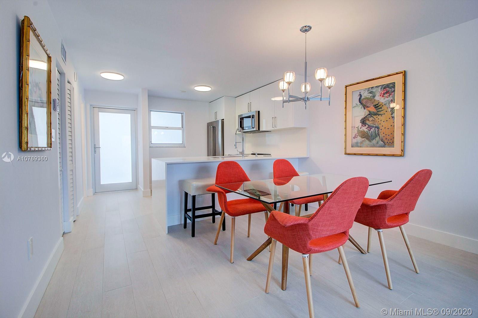 Furnished spacious 1 bedroom 1.5 Bath located in the heart of South Beach. Completely Remodeled in 2019 with top General Contractor and permits! All new walls, ceilings, porcelain tile flooring, high end Kitchen Aid stainless steel appliances, white quartz counter-tops, back splash, pantry, new lighting fixtures, large closets. NEW Hurricane impact windows and doors. This spacious residence boasts tons of natural light throughout. Unobstructed views of skyline, facing South. Parking available, by waiting list assigned by building and low maintenance fee. Close proximity to Lincoln Road, Ocean, Flamingo Park, and tons of restaurants and shops. Updated Boutique building with stylish lobby. Just bring your flip flops and tooth brush. Furnishings included! SOLD TURNKEY! Easy to show