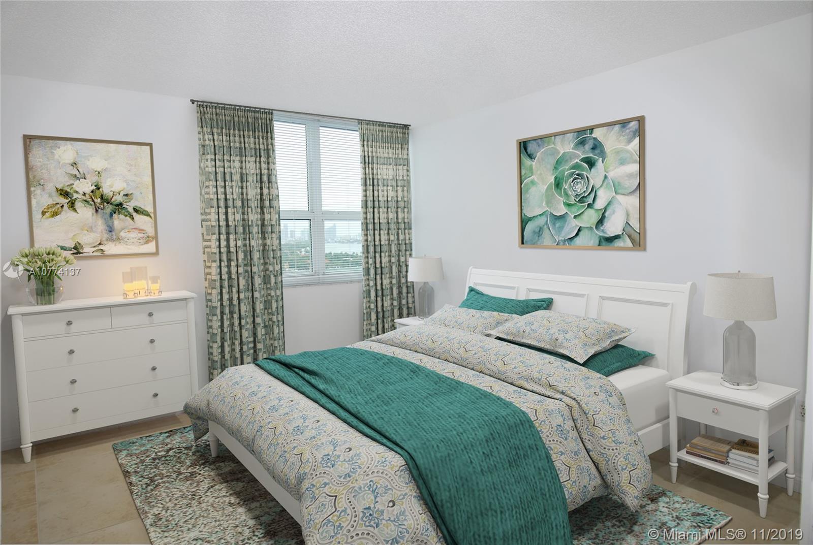Beautiful unit overlooking the bay, fisher island and the sunset over downtown Miami. Tile floors. Don't miss this deal to live at the Floridian.Washer/dryer in the unit. Unit is not remodeled but clean and in good conditions.