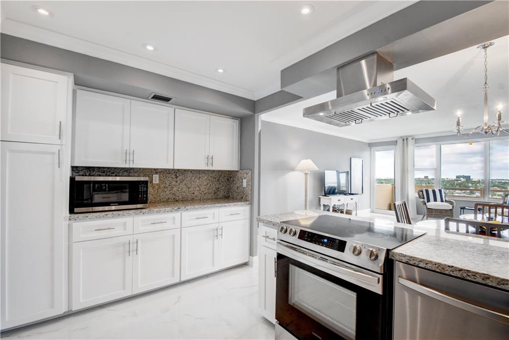 JUST REMODELED SHOWCASE UNIT FULLY FURNISHED, NEW 24X24 PORCELAIN TILE,CROWN AND BASE MOLDING THROUGHOUT. OPEN SPACIOUS DESIGNER KITCHEN W/NEW PLUMBING AND HIGH END STAINLESS STEEL APPLIANCES, NEW CABINETS, GRANITE COUNTER TOPS AND BACK SPLASHES. CHEFS VENTED HOOD IS CONNECTED TO OUTSIDE. THE BATHROOM FEATURES ALL NEW PLUMBING, NEW WATER MAIN SHUT OFF VALVE FOR THE ENTIRE UNIT, PER BUILDING RULE. HURRICANE WINDOWS & DOOR. GREAT WALK-IN SHOWER HAS CUSTOM FRAME LESS GLASS DOORS. NEW COMFORT HEIGHT COMMODE AND VANITY. NEW HOT WATER HEATER, CUSTOM LOUVERED DOORS FOR EASY ACCESS TO A/C & HOT WATER HEATER. ALL RENOVATIONS COMPLETED W/BUILDING APPROVAL AND CITY PERMITS. WALK TO COMMUNITY ACTIVITY CENTER, BEACH, BANKS, RESTAURANTS, SHOPPING. FREE SHUTTLE TO MALL & HOSPITAL. BLDG HAS CENTRAL A/C