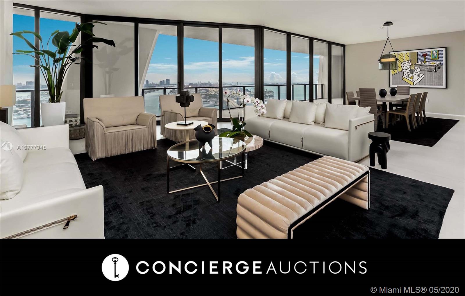 AUCTION: Previously Offered for $7.1M. No Reserve. Open By Appointment. FULLY FURNISHED AND READY TO MOVE IN! Beautifully designed and decorated this 4,876 square foot unit offers a custom designed floor plan with 2 Master Baths, an open family room and a convertible Den/Office. Live in the center of it all! Across the street from The American Airlines Arena, The Frost Museum of Science, The Perez Museum, The Ziff Opera House, The Arsht Center! 7 Star services with the only Heliport/Helipad, Sky Lounge and Indoor pool, designated private Beach Club in South Beach, hospitality concierge, private resident’s only car, and so much more!