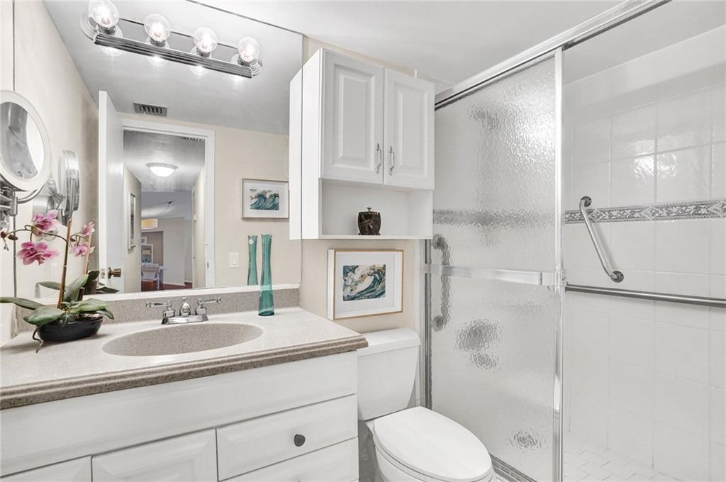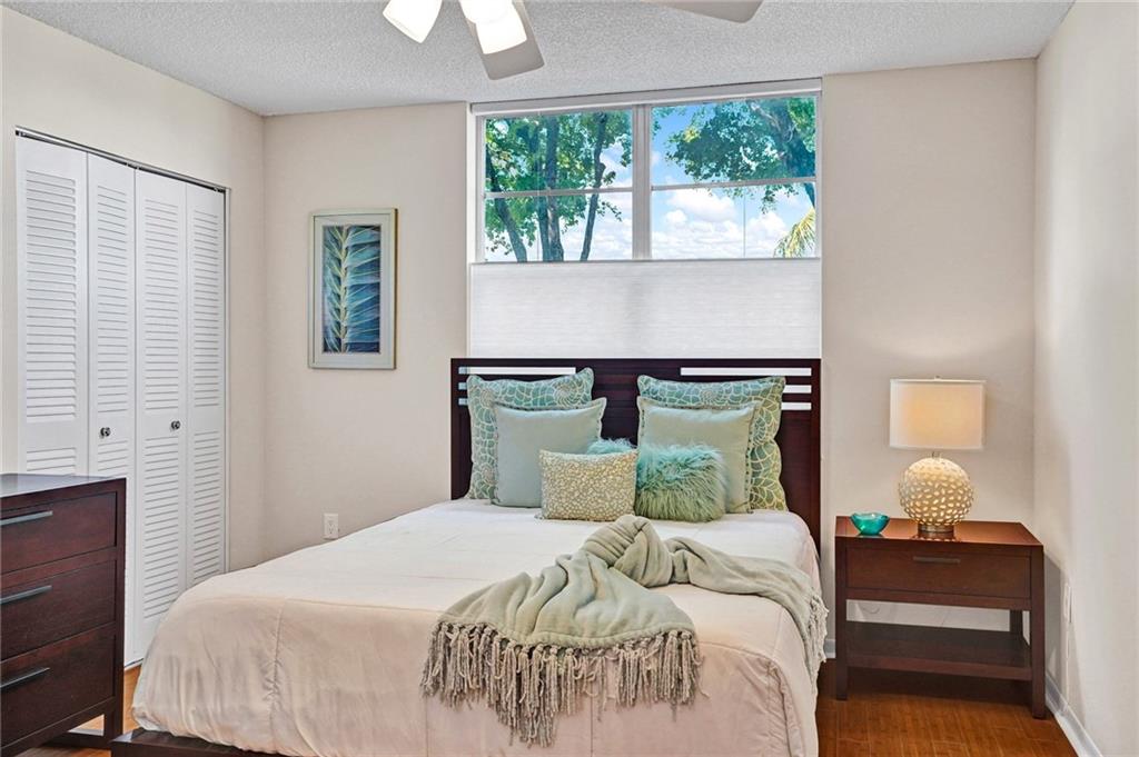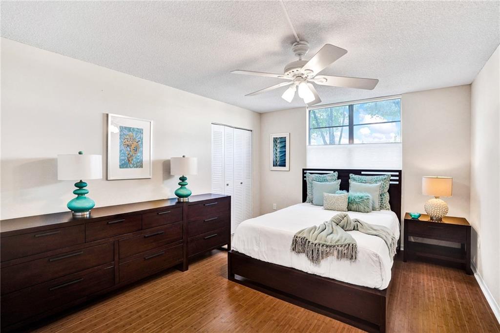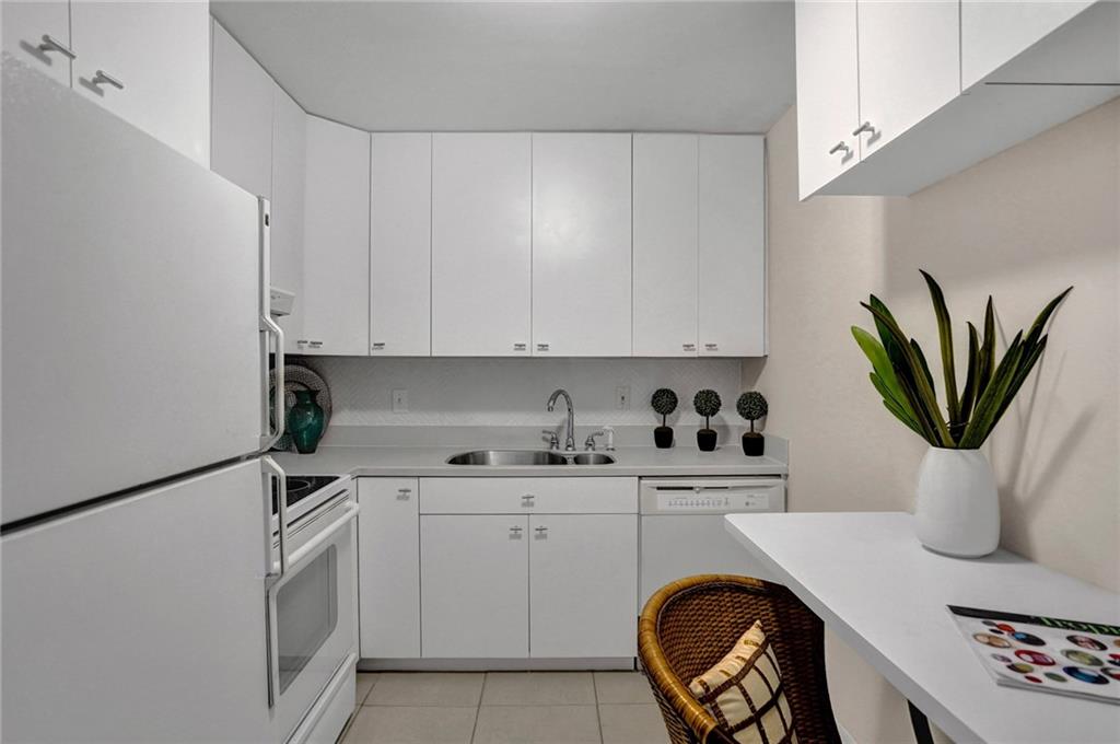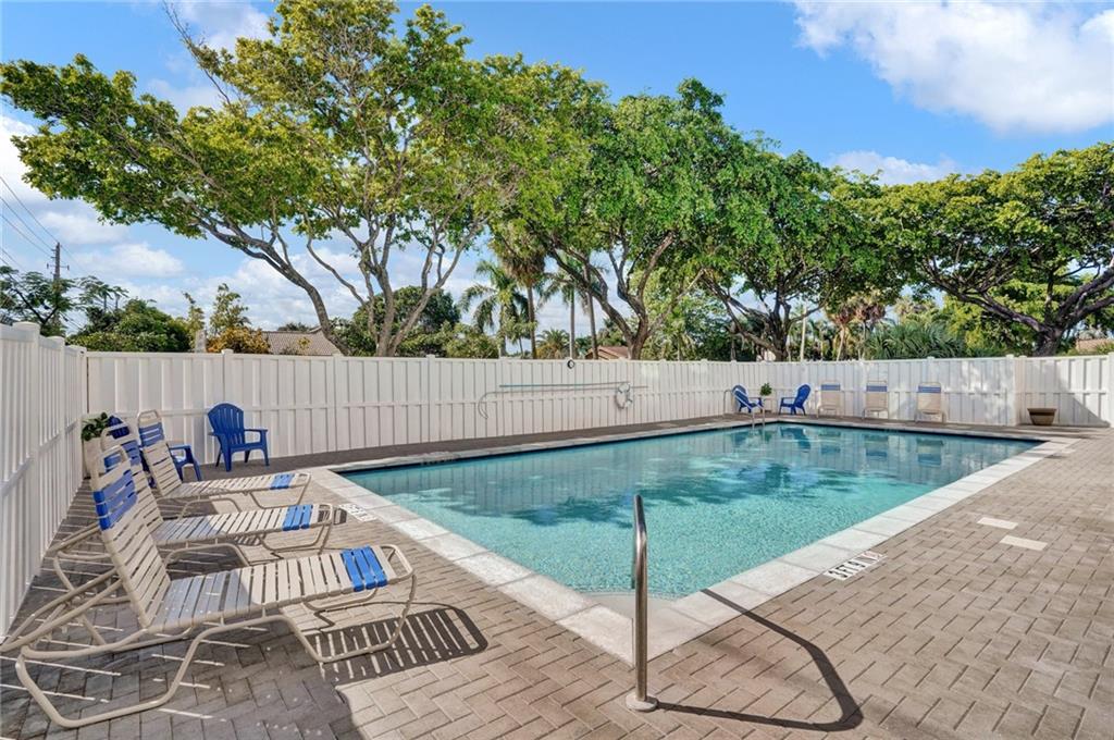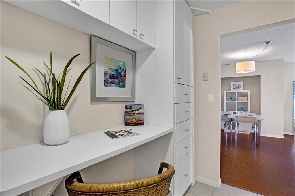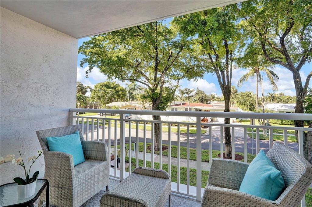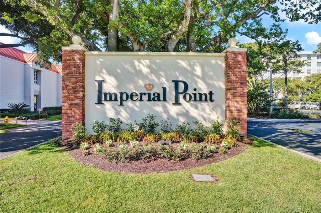 THIS IS THE ONLY 1 BEDROOM CONDO FOR SALE IN BUILDING! MOVE IN CONDITION; IN DESIRABLE "IMPERIAL POINT" NEIGHBORHOOD; ONLY 5 MINUTES BEACH. UPDATED WHITE KITCHEN W/ HERRING BONE PATTERN TILE BACK SPLASH, GENEROUS FLOOR TO CEILING WHITE CABINETS W/ BRUSHED STEEL PULLS & BUILT IN OFFICE/ WORK STATION. UPDATED WHITE BATHROOM W/ INLAID DECORATIVE TILE INSERTS. LARGE BEDROOM W/ 2 CLOSETS. IMPACT GLASS SLIDING DOORS LEAD TO LOVELY COVERED PATIO; PERFECT FOR MORNING COFFEE. AC 4-6 YEARS OLD, ALL NEW ELECTRICAL & CIRCUIT BREAKER BOX & FRESHLY PAINTED INTERIOR W/BAMBOO FLOORS IN LIVING ROOM/ DINING ROOM & BEDROOM. WALK AROUND THE CORNER TO DINING, SHOPPES, LIBRARY & HOSPITAL. UNIT COMES WITH BEST PARKING SPOT CLOSEST TO THE MAIN ENTRANCE. BEDROOM WINDOW IS NOT IMPACT GLASS.