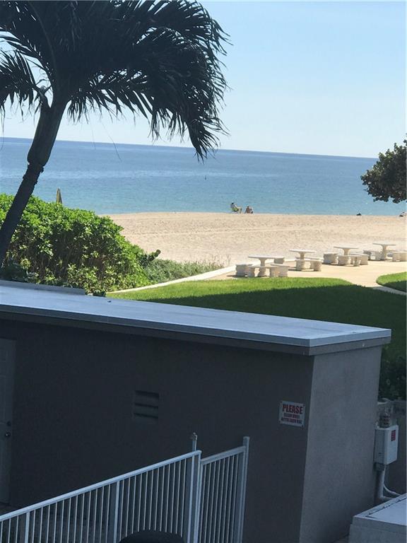 Fully Furnished Studio on the Sand!!! Very liberal rental restrictions make this a great investment opportunity! Awesome Lauderdale by the Sea location!!Electric and water are included in low monthly maintenance fee... Recently updated bathroom....very cool art deco-ish kitchen ...tastefully furnished and ready to go! Beautiful views of the Ocean....heated pool,rec room, bike storage, extra storage bin.....one designated parking space....no oversized trucks or motorcycles please...call agent to show!!