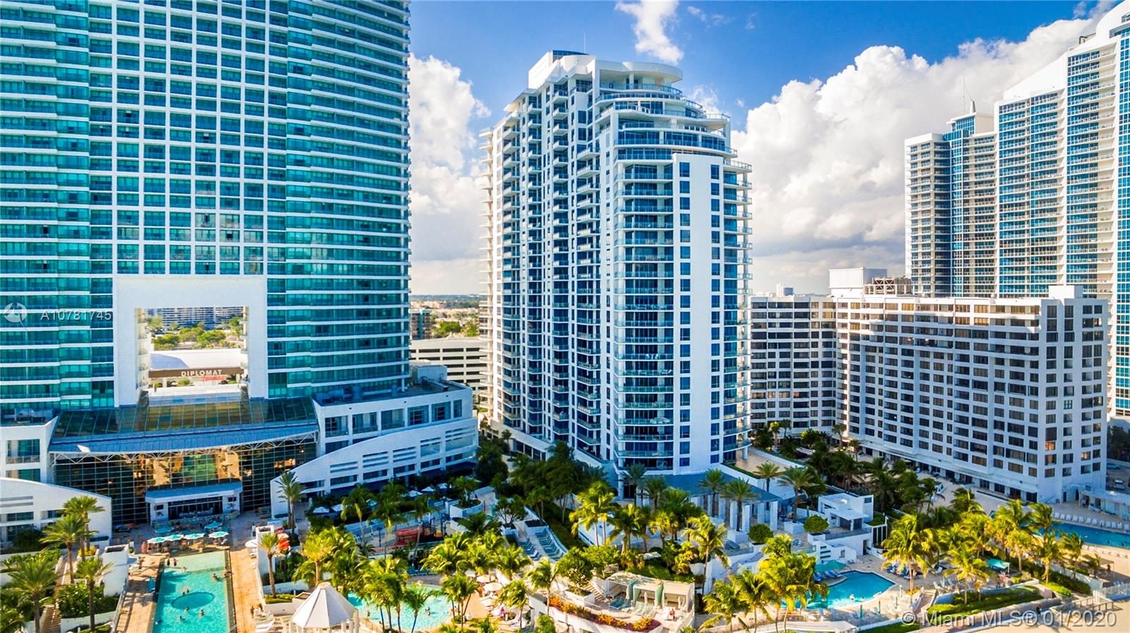 Experience the bright and airy effect of soaring 12 ft ceilings from the 26th floor at The Diplomat Oceanfront Residences. Enjoy the spanning views of the city & ocean from this 3,050 sq ft sub-penthouse style 3 BR. Private elevator access opens into the foyer with custom double door entry for a grand entrance. The spacious corner apt has two large terraces, marble floors, electric blinds, custom-built closets, secured safe and a split floorplan. The room arrangements reduce noise echoing. Enjoy the gourmet kitchen w/ gas range finished w/ Italian cabinets & high-end appliances - subzero, Miele and Dacor. With resort-style amenities, experience luxury living w/ access to the Diplomat Resort & Spa next door, 6 restaurants & more! Theater room,fitness center,sauna,heated saline pool.