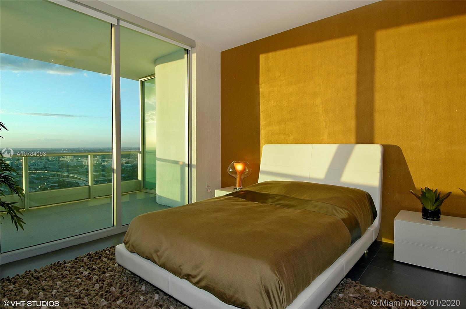 This luxury apartment has over $200,000 of upgrades. Featuring a fully furnished designer furniture by Sklar plus Lualdi Doors and closets by Lux. Iberia Tiles Floors throughout. Plasma TVs and Electric Shades for Living Room,, Dining Room, Master Bedroom. Direct east views of Biscayne Bay, Intracoastal, Ocean and west views of the Miami Worldcenter. Private elevator lobby with direct entry to unit foyer. 1579 square feet per tax records and 1712 square feet per floor-plan. Master Bedroom with walk-in closets that are completely built out. 2nd bedroom with complete built closets and has direct entry to terrace. Full service gym, spa, private theater, huge playroom with pool table. Pool deck with 2 pools, towel service and barbecue gas grills. 2 level lobby with private motor lobby.