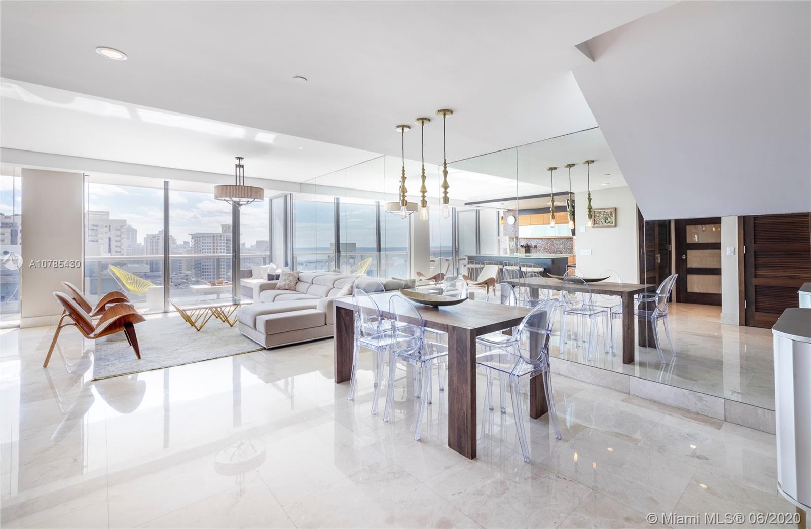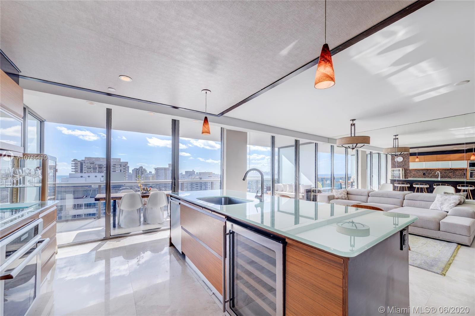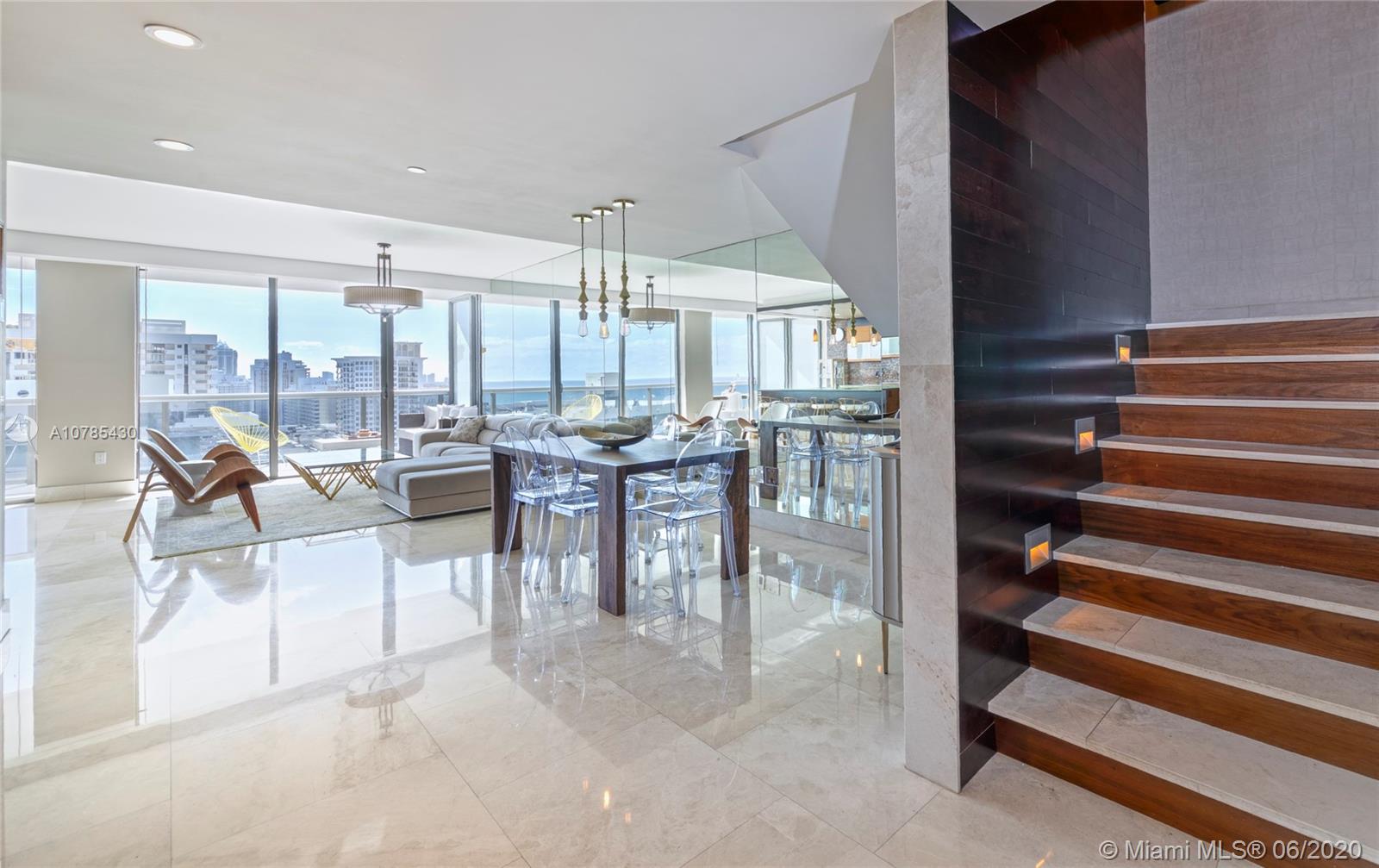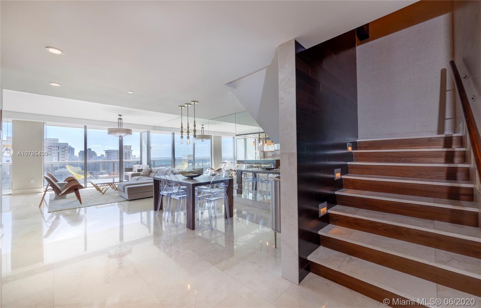 ONE OF A KIND. This gorgeous 2 story duplex features huge 2 balconies with breathtaking ocean, intracoastal and Downtown Miami skyline view. Top of the line Bosch and Thermador appliances w/ built in expresso machine, wine cooler, washer & dryer, open kitchen, floor to ceiling impact glass doors, custom closets , motorized window treatments throughout and many other fine details. Mei is a full service condominium with 24HR security, Concierge, Fitness Center, Towel Service at the Pool, Sauna, Jacuzzi tub, massage room, yoga room and much more. Cable and internet are included in maintenance. Free valet for residents and guests. Offered furnished or unfurnished.