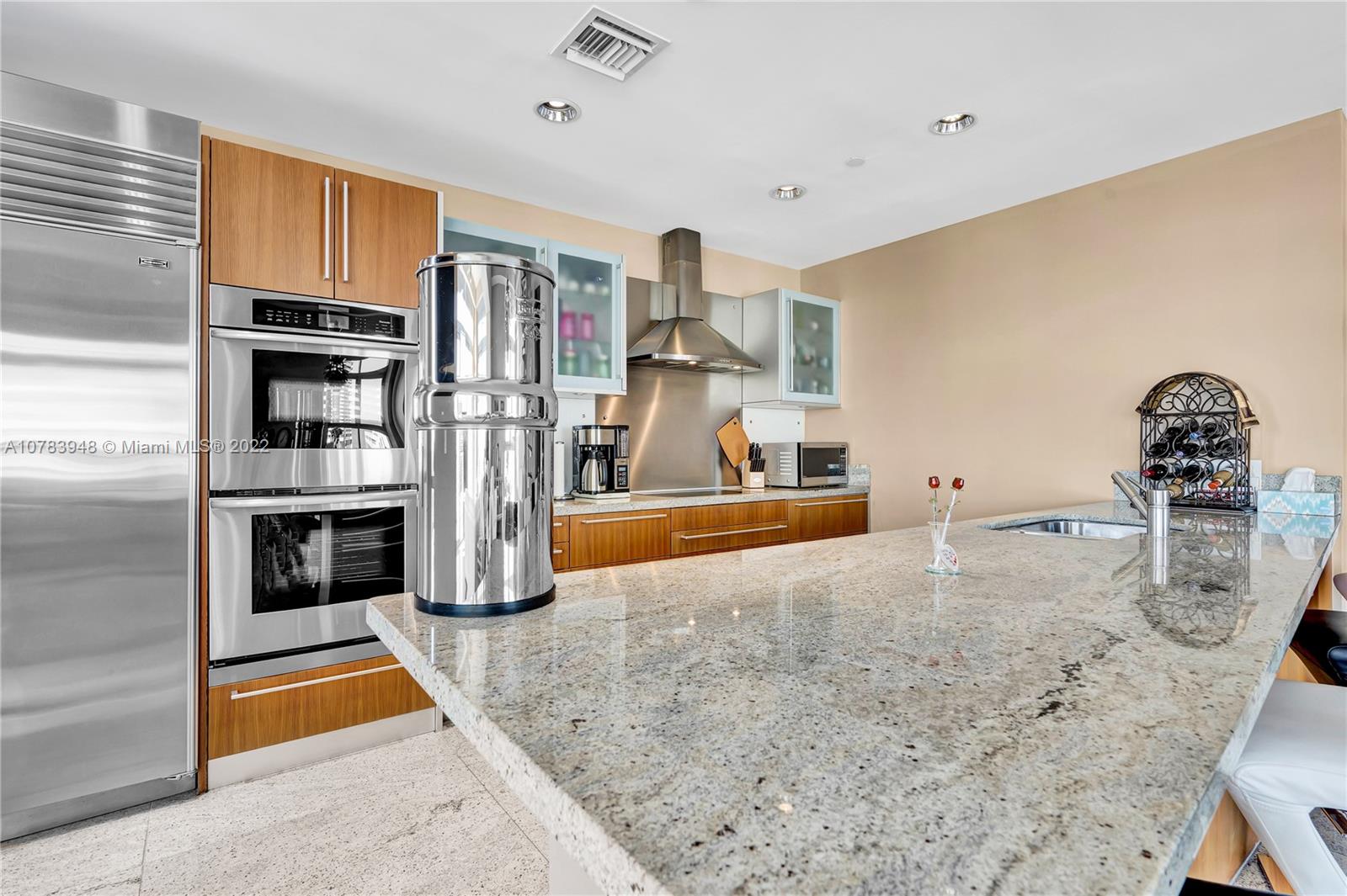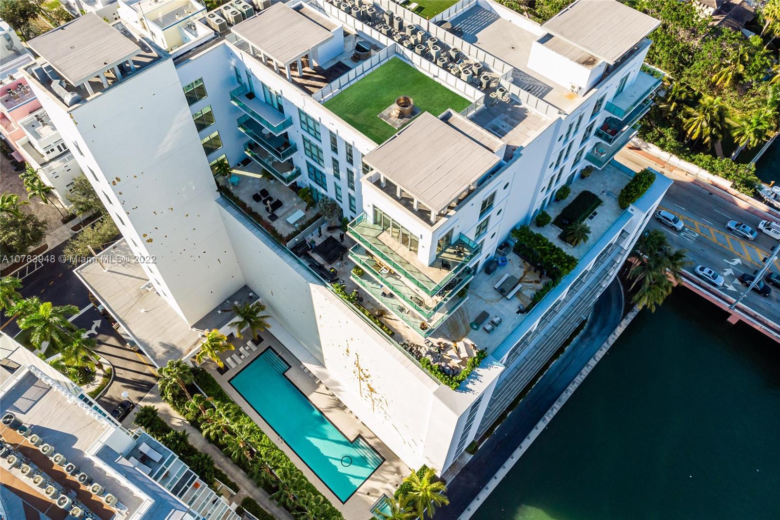 Sleek, modern Penthouse loft at Chatham at Aqua on Allison Island. 4.5 baths, Private Jacuzzi on the massive Private Rooftop deck. Amazing views of intracoAstal, ocean, golf course, and bay. 12.5 ft. ceilings, granite floors, super high end finishes. Bulthaup kitchen, Subzero fridge, 2 deeded parking with full use of 3rd parking space. Gated private island, with 24 hour security. State of the art gym, valet, concierge services, kids play room, 2 swimming pools,