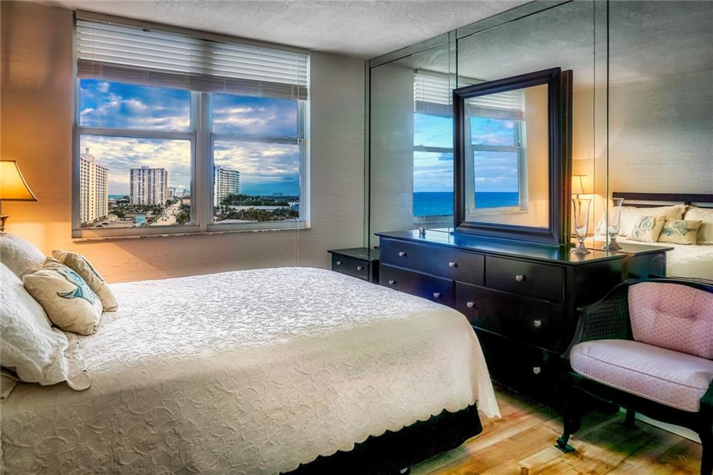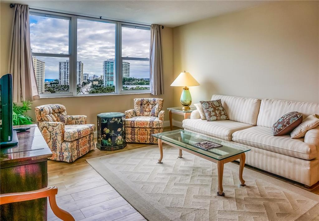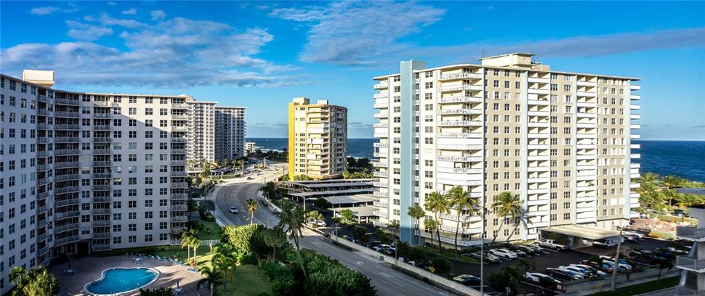 Come live in the heart of vibrant Pompano Beach in this renovated beach condo. Wide open views of the ocean, Intracoastal and city from the living area, balcony and bedrooms bring the Florida sunshine to you in every room. Granite and stainless kitchen, laminate and tile floors, impact windows and doors - nothing to do but move right in! Located one very short block from the sand and steps from restaurants and shops with a great pool and covered parking. Low maintenance, brand new AC. Come make Pompano Beach your new home.