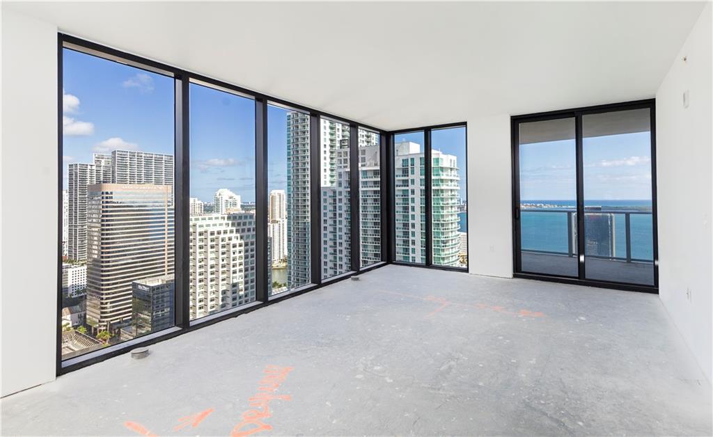 Amazing BRAND NEW, never lived in, corner unit with floor-to-ceiling impact windows with incredible views at the iconic 1010 Brickell. Kitchen with top-line SMEG appliances, best views overlooking the bay. The unit includes a private elevator, 3/3 + den, floor-to-ceiling windows with spectacular views, and a balcony with grill. Fantastic amenities include valet, rooftop cafe, pool, deck and lounge, and outdoor movie theater, co-ed Hammam spa, cryotherapy plunge pool & hot Jacuzzi, massage & treatments rooms, Finnish sauna & steam room; basketball & racquetball courts, running track, indoor heated swimming pool, gym, party room with a kitchen, open terrace & bbq, kids room with bowling, virtual golf, air hockey, ping pong. VERY EASY TO SHOW, call agent.