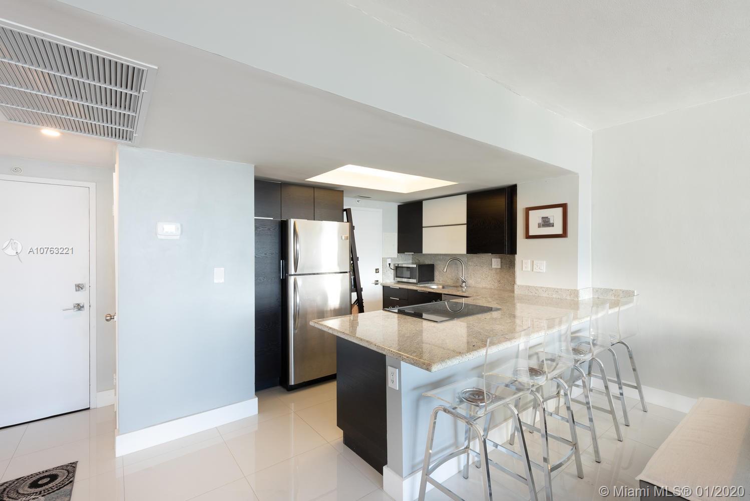 Imagine yourself living in this beautifully remodeled unit on the 14th floor & taking in the endless views of Biscayne Bay on quiet Belle Isle on the Venetian Causeway. Just minutes from world famous Lincoln Rd you will have access to everything that South Beach has to offer from your own island oasis. New white porcelain 2' x 2' tile throughout, open kitchen with stone countertop, new AC and impact windows are just some of the recent upgrades. Bathed in sunlight, you will have ample space from every corner. Both bathrooms fully remodeled. Recent renovation of all common areas has only added to the charm of this Miami Modern building. Spend your free time taking in the sun, a dip in the jacuzzi, or host a BBQ while overlooking Biscayne Bay in the spacious outdoor pool area.