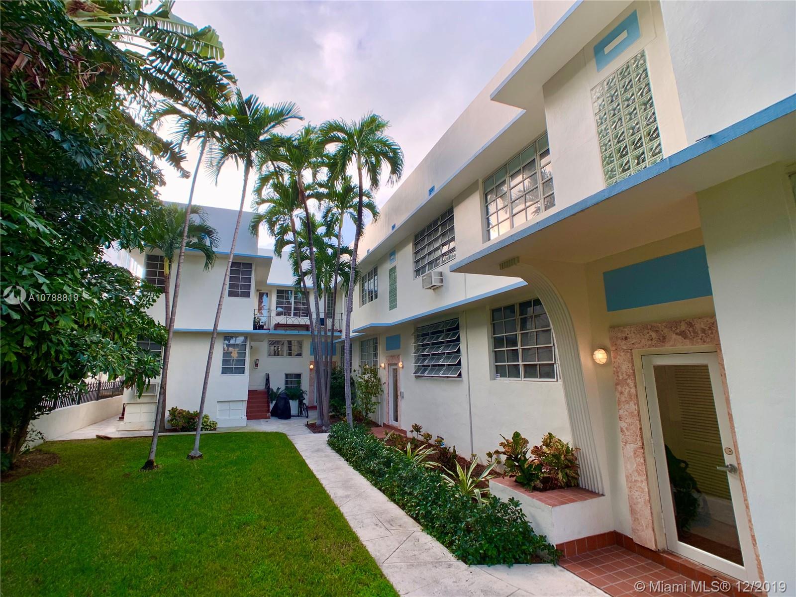 Fantastic opportunity to own in this charming Art Deco masterpiece designed by the well-known architect Roy France in 1945. This studio residence is filled with Deco accents including a finely detailed faux fireplace, open floor plan, hard wood floors, tons of closet spaces and beautiful garden views. The condo features gated access, well maintained grounds, on site laundry, low monthly maintenance fees and no special assessments. Conveniently located walking distance to the beaches, Flamingo Park, Lincoln Road, Espanola Way and world famous shopping and dining. Perfect as a residence or investment, has tenant on month to month basis and can be rented immediately after closing. Easy to show!