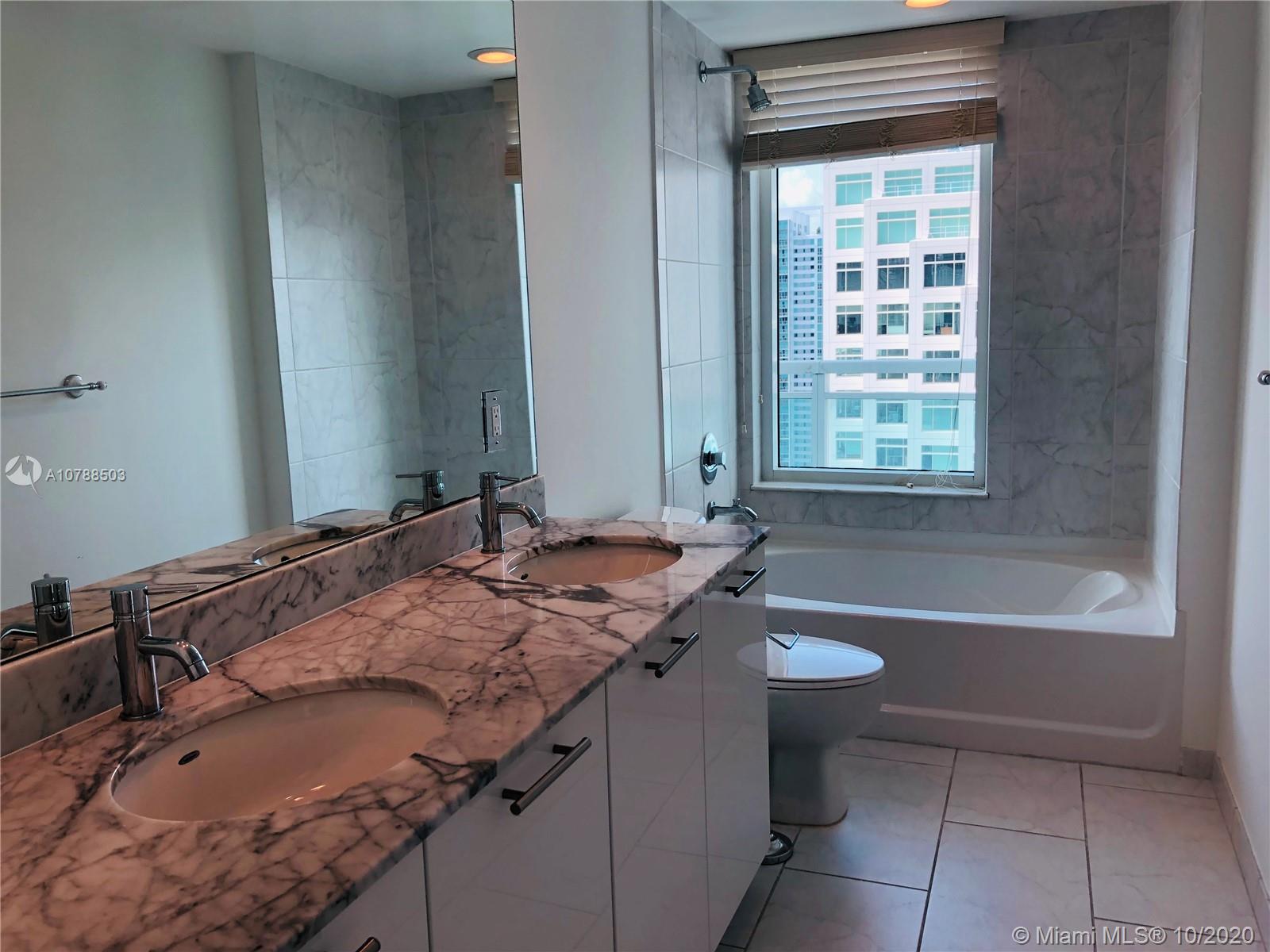 Beautiful 1 bed/ 1 bath with an amazing city views. Very spacious unit with laminated wood floors throughout & a large walk in closet. Residence features modern high ceilings, stainless steel appliances ,imported italian cabinetry Amenities:24 hr security and concierge, 24 hour valet parking, State of the art Fitness Center in each tower, 2 Infinity-edge heated pools, Steam room,Theater room, Business center, party room, pool table & lounge. Walk to Mary Brickell Village and Brickell City Center mall. Minutes away from American Airlines Arena & Performing Arts. Water, basic cable & internet included