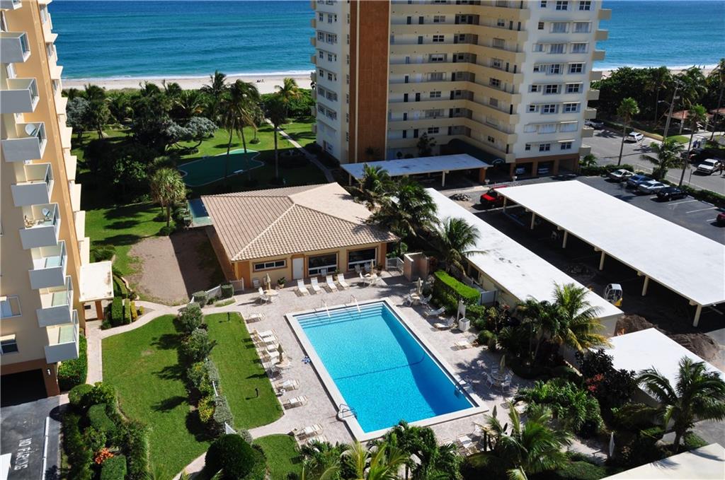 Stunning unobstructed panoramic ocean views as soon as you walk in the front door! Lots of extra light from this South east corner unit of the east building. This 2/2 condo comes with Hurricane Impact windows, beautiful new custom built kitchen & lighting with SS appliances, marble flooring throughout & a new electric panel. Enjoy the gorgeous views of the Hillsboro Inlet & Lighthouse! Brand new glass balconies and full concrete restoration is being done to the building. Very well maintained grounds, large heated swimming pool, private entrance and exit to the beach from the complex. (All special assessments have been paid by Seller)