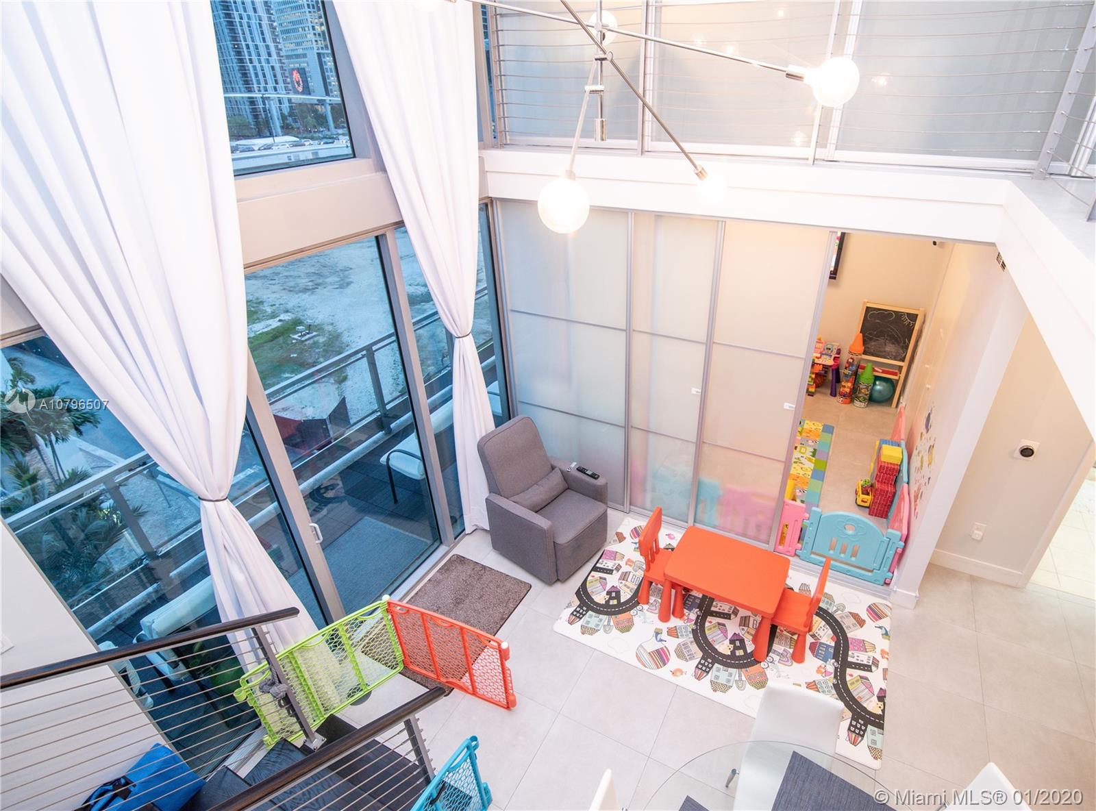 Beautiful, very spacious 3-story Townhome in the Ivy Condo. Double-height ceilings, with floor to ceiling glass walls in the living room area, this 1 bed plus big den /2 Full BA plus add'l office space... featuring a very PRIVATE, unique 892 square foot ROOFTOP TERRACE. This PRIVATE, SPACIOUS ROOFTOP TERRACE is perfect for family events, entertaining guests or just relaxing while you enjoy the amazing views of Brickell, Downtown, and the River. The den has already been converted into a 2nd bedroom with sleek, white glass sliding doors. Large Master Bedroom with Walk-in closet. 1 assigned parking spot conveniently located on the same floor as the unit.