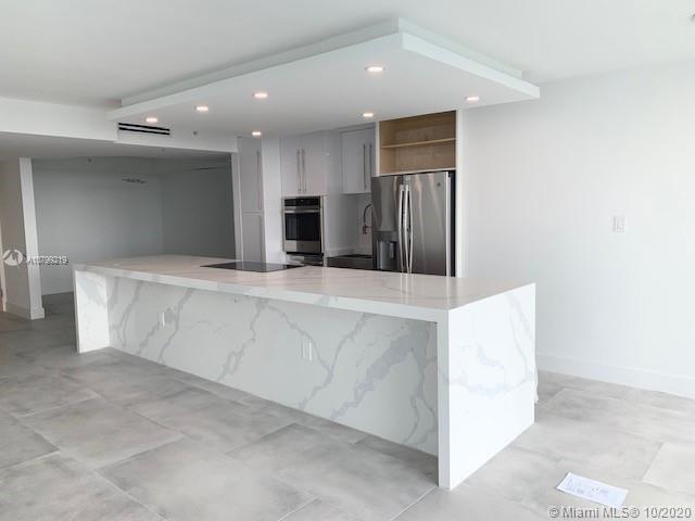 Unit remodeled from A to Z for owner's use, but never lived in. Buyer will enjoy a brand new unit. Just walk to the beach from this beautiful 2 bedroom, 2 Baths plus 1 Den on the exclusive Oceania Island. Unit has been upgraded, with a beautiful open kitchen, massive island in Calacatta countertop. Beautiful tile floors plus wood in the bedrooms. Custom walk in closet. Jacuzzi tub in the master bathroom. Large balcony with amazing views of Ocean and intracoastal from all rooms to enjoy sunrise and sunset. Nice view to Oleta River park. Electric shades. Turn the den into a home office or a guest bedroom.Brand new appliances. Olympic size pool, tennis courts, racquetball, squash, private BEACH club ,spa, Pilates & yoga. Gated community 24/7 security, Valet parking. A must see, a must own!!!!