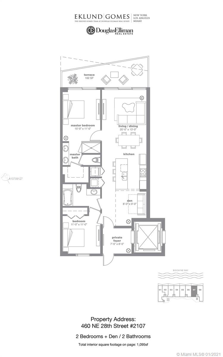 Enjoy unobstructed bay views from this beautiful residence in ICON Bay. Featuring 2 bedrooms, 2 baths plus den, residence 2107 offers 1,095sf of interior living. This home features a private elevator with foyer entry, spacious kitchen, large terrace, built-in closets, 9 foot floor-to-ceiling windows and window shades. ICON rises 40 stories and has 300 residences with private elevators. Amenities include waterfront deck with infinity pool, clubhouse, tennis courts, fitness center and spa, theater room, kids play lounge, 24-hr valet and more.
