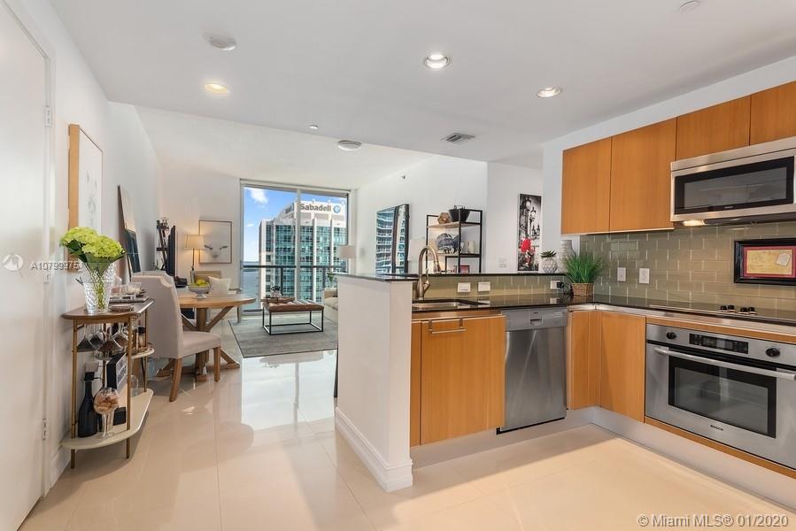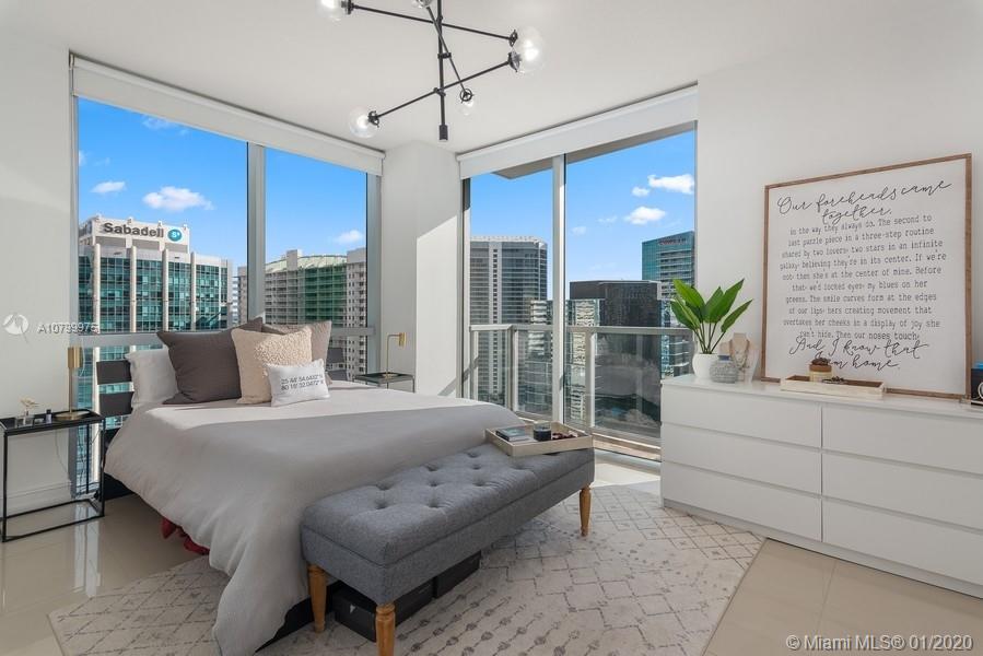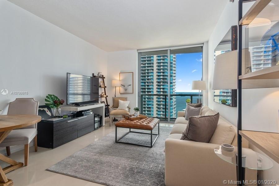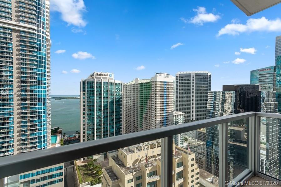 Urban Living at its best! Immaculate 2 bed/2 bath South East corner unit: its location, floor height, 2 standing balconies & floor to ceiling windows allow for marvelous natural light & expansive views of Biscayne Bay from the Port of Miami to the NE mostly enjoyed from the living room, all the way to Coconut Grove to the SE giving the master room an amazing combination of city and water views. Porcelain floors, Open kitchen w/granite counters, Italian cabinetry, stainless steel appliances. Ample closet space w/enlarged closet in master bedroom. Amenities include pool, fitness center, billiard, cigar, massage, yoga & party rooms, virtual golf, business center. This financially very solid building has an unbeatable Brickell location, with the easiest access both for vehicles & pedestrians