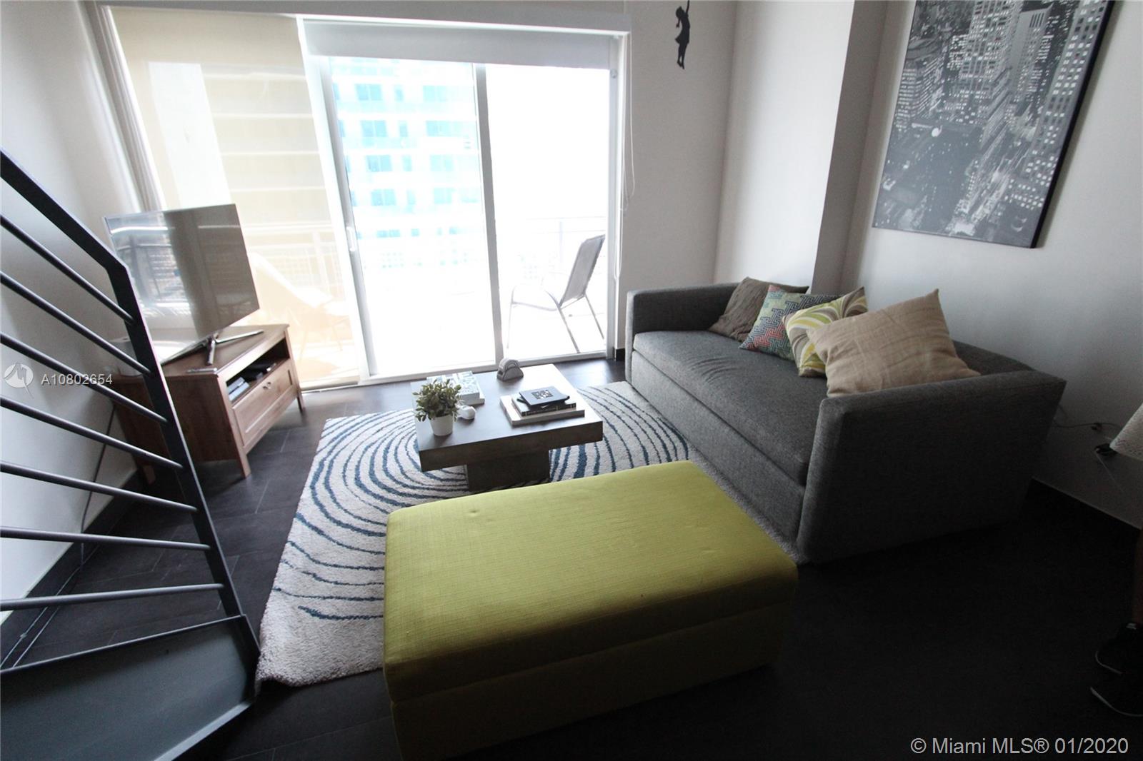 Best deal in the building! Loft style unit filled with natural light and tastefully finished with beautiful floors, chic kitchen cabinetry, stainless steel appliances & granite countertops, double height ceiling in Living area and 10ft ceilings upstairs. Located in the Heart of Brickell walking distance to main grocery stores, shopping and restaurants. Amenities include pool, fitness center, 24hr Valet, 24hr concierge, business center and party room. Pet friendly!