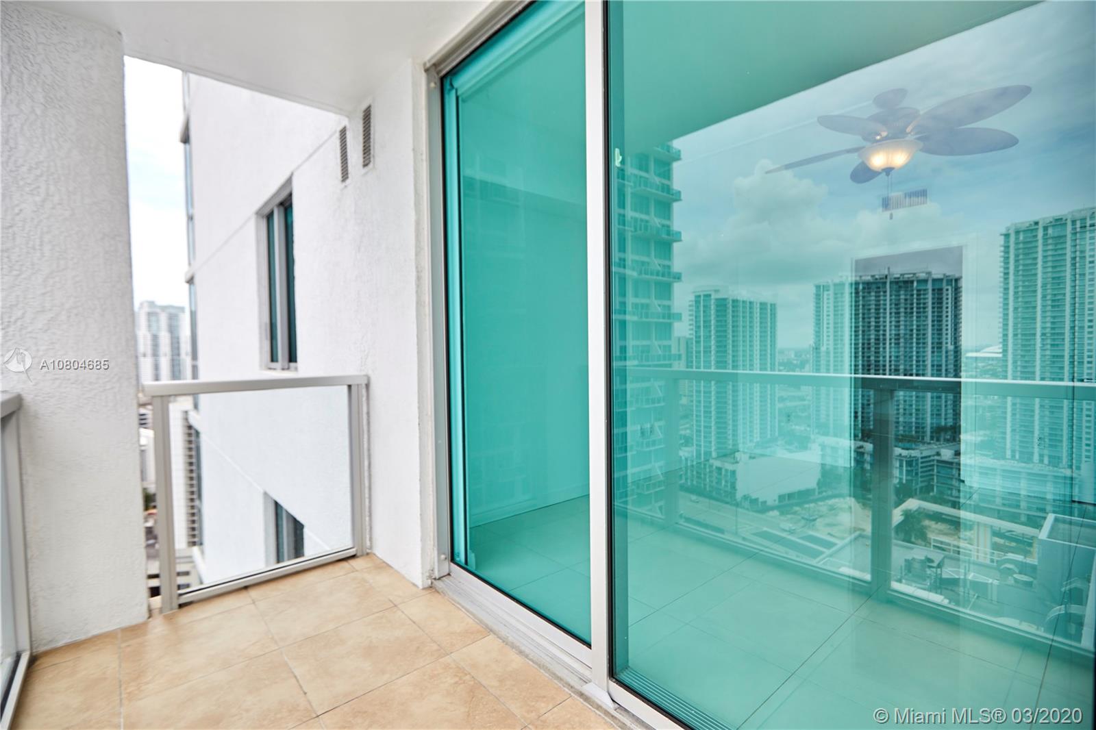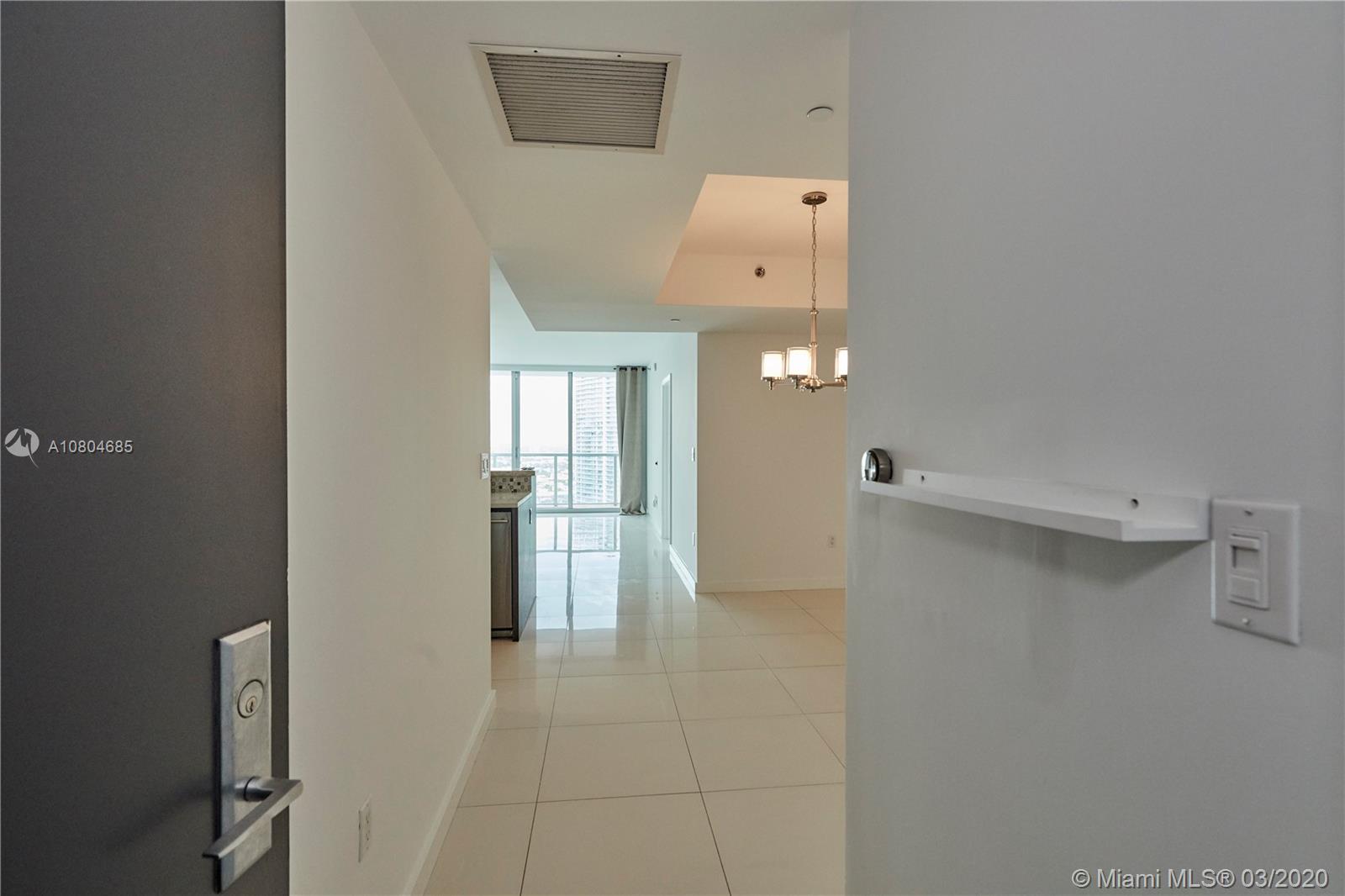 Largest one-bedroom plus den floor plan in the building. Western facing with beautiful unobstructed views of the Miami River and sunsets. Walk-in closet in master. Tiled step-in shower, jetted tub, and dual sinks in large bathroom. Unit upgrades: 5-stage osmosis water filtration system, Nest thermostat, motorized shades in living/bedroom, tiled balcony, upgraded lighting, ceiling fans in living/dining and bedroom, 18x18 white porcelain flooring tile throughout living spaces, tile back-splash behind cook-top, dimmer switches added in dining/kitchen/entry/living/bedroom, NEW dishwasher. The best upgrade is the addition of custom cabinetry and bar height counter-top which expands the kitchen into an eat-at breakfast bar. Unit includes one parking located on level 4 of the 10 story garage.