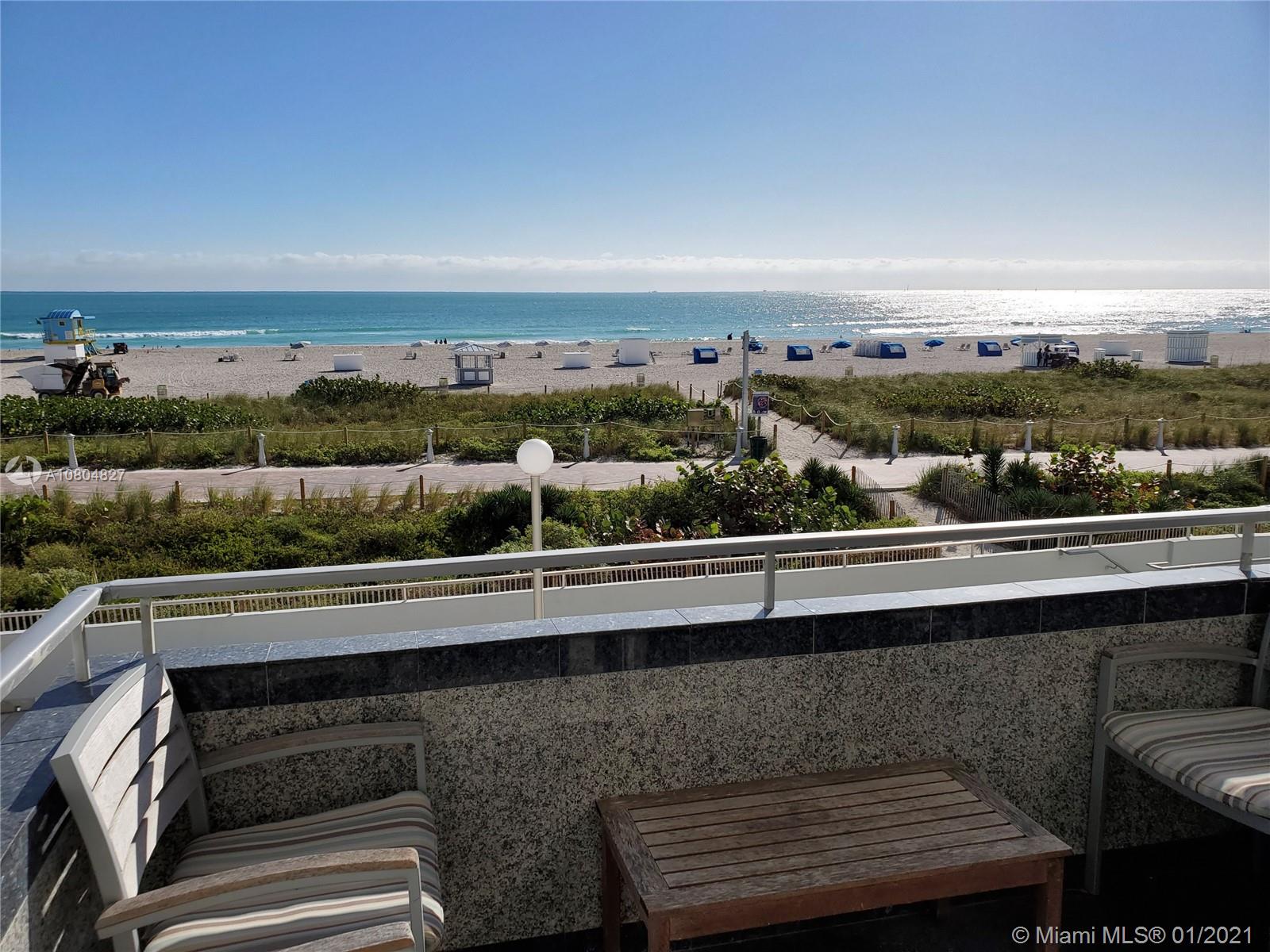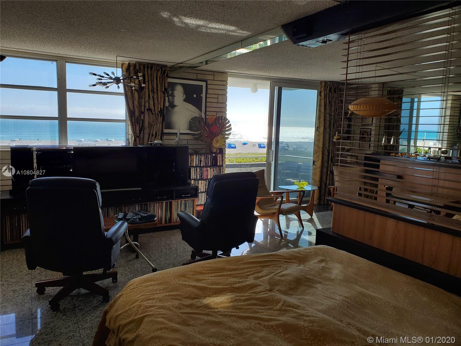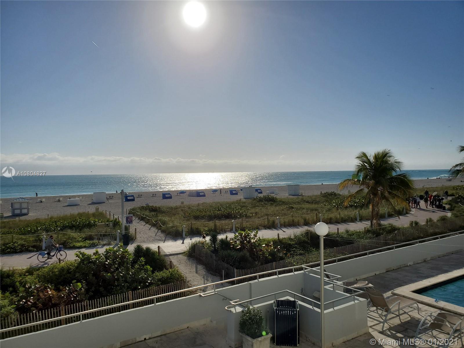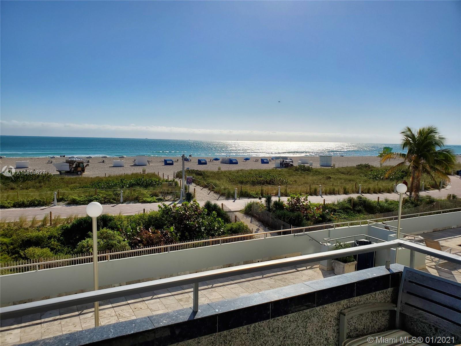 Spectacular UNOBSTRUCTED DIRECT OCEAN VIEWS and Lumnus Park view in coveted South of Fifth. Most desirable NE Corner unit w lots of sun light . The apartment has been completely restored with the 60's in mind . A piece of art. Very low maintenance fee incl. WiFi, Tivo, cable, beach lounge chairs + umbrellas, saunas, oceanview gym, & heated pool.. New boardwalk and Jogger's path, direct beach entrance. Extremely convenient and precious assigned parking space