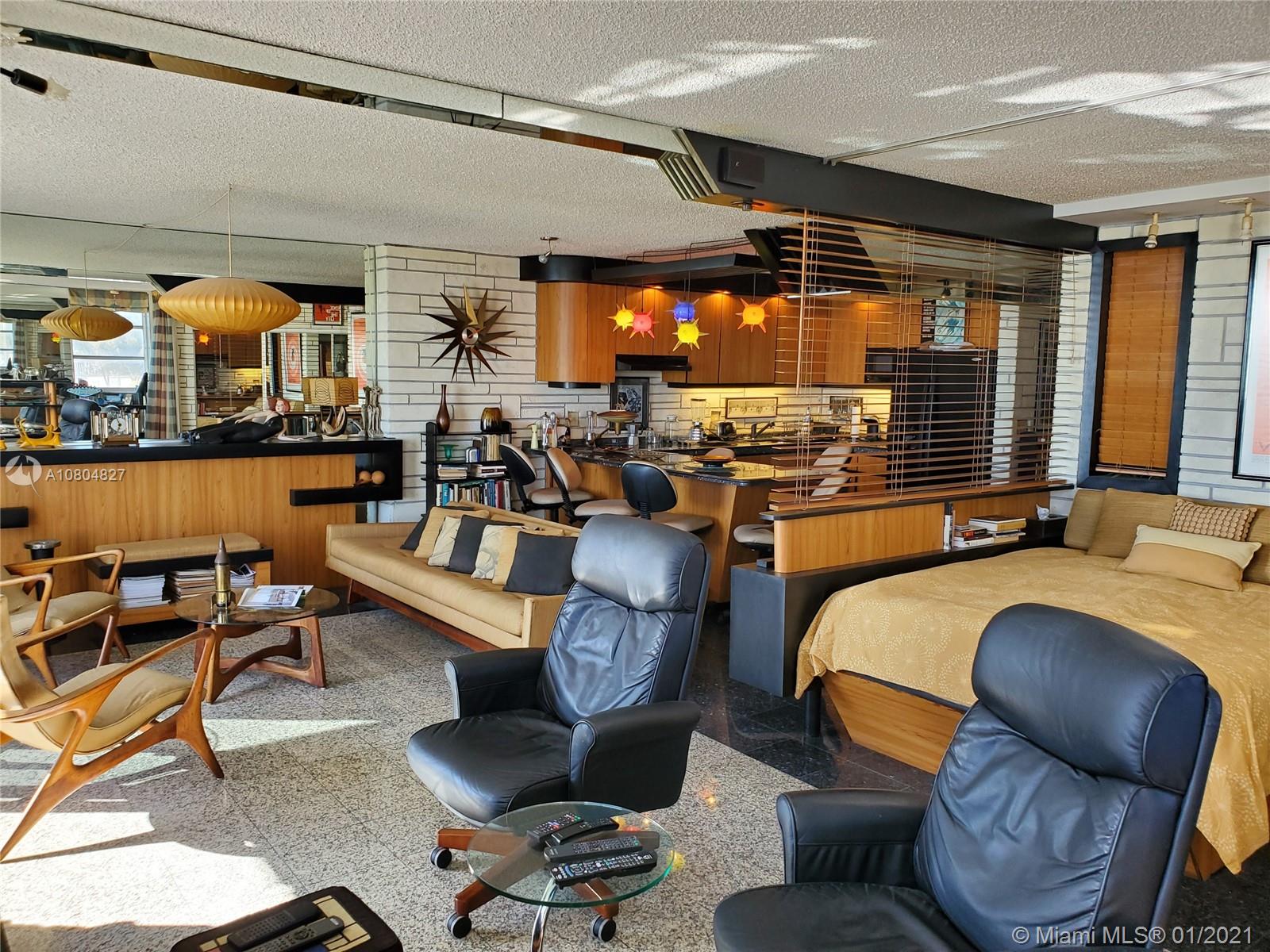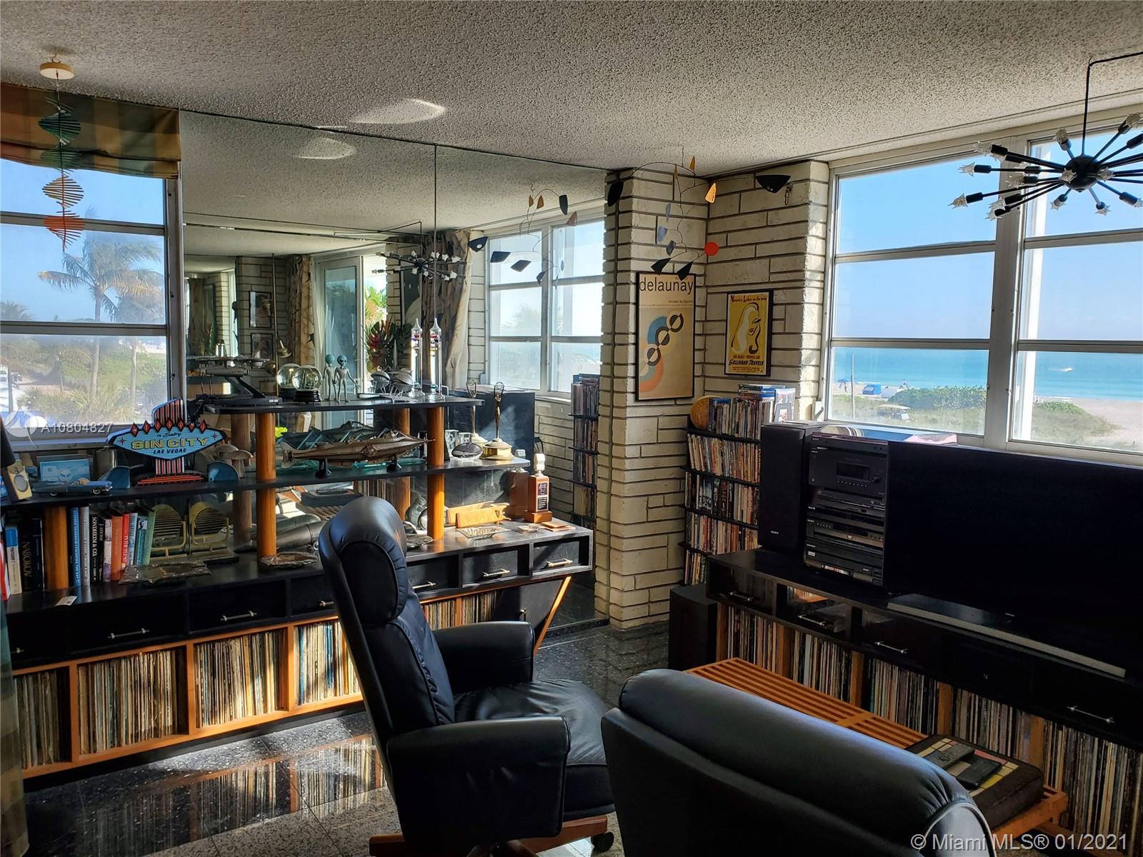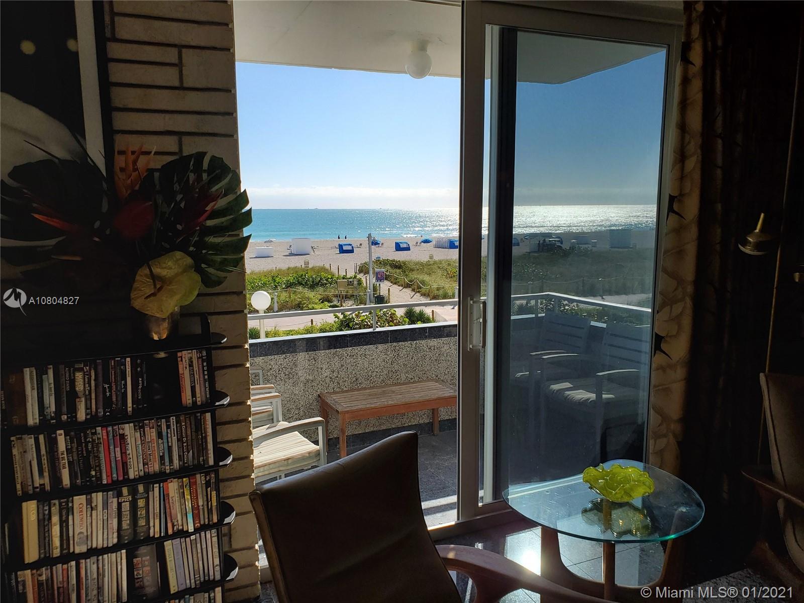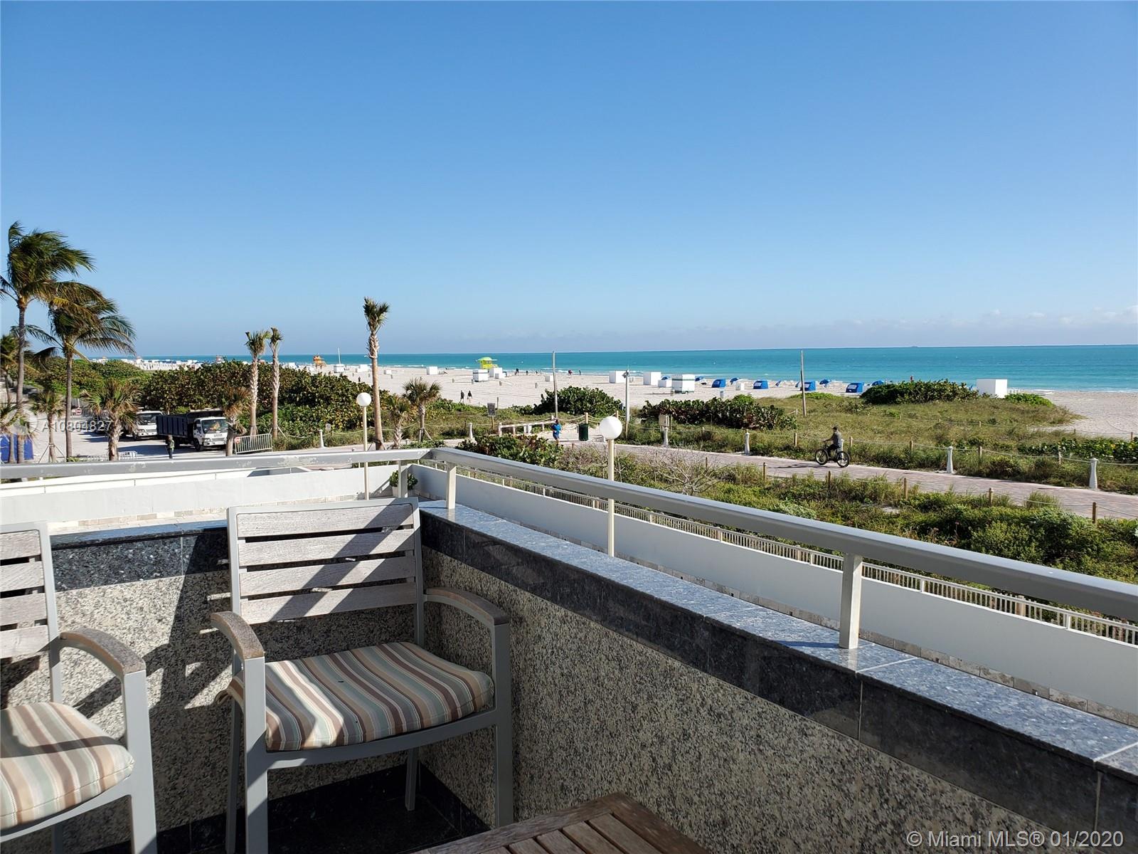 Spectacular UNOBSTRUCTED DIRECT OCEAN VIEWS and Lumnus Park view in coveted South of Fifth. Most desirable NE Corner unit w lots of sun light . The apartment has been completely restored with the 60's in mind . A piece of art. Very low maintenance fee incl. WiFi, Tivo, cable, beach lounge chairs + umbrellas, saunas, oceanview gym, & heated pool.. New boardwalk and Jogger's path, direct beach entrance. Extremely convenient and precious assigned parking space