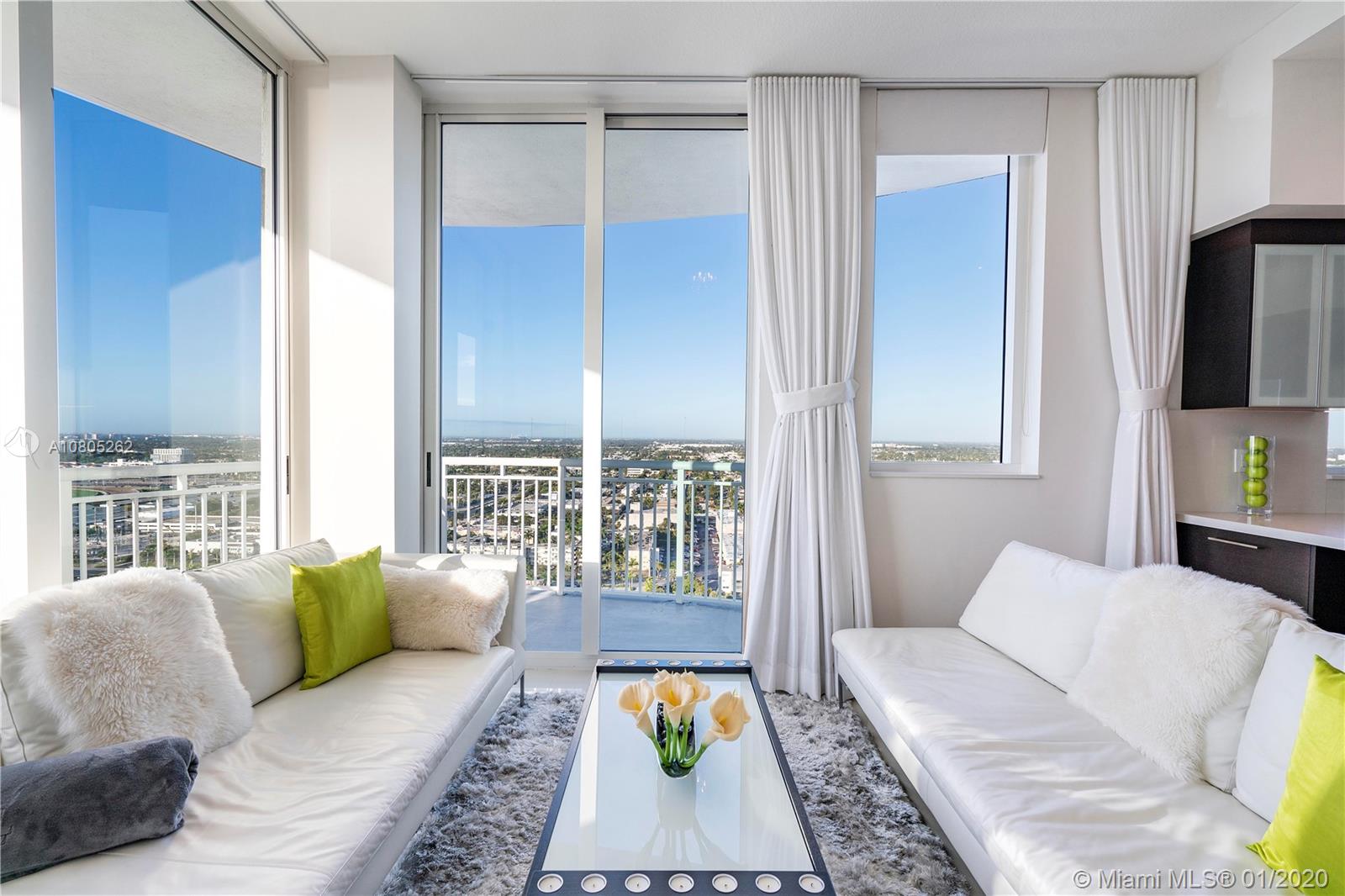 Lower penthouse corner unit, modern designer remodel, 2 bed 2 bath with breathtaking unobstructed panoramic views of ocean, intracoastal waterway, golf course and city skyline. Luxurious finishes include: 10ft ceilings, 24x24 white rectified porcelain tile, roller shades in living area, ripple fold blackouts shades in bedrooms, custom closets with custom glass doors, stainless steel Bosch appliances, Samsung washer/dryer, Nest thermostat, LED lighting throughout, spacious master bathroom with dual vanity, tub and large separate shower. Resort style amenities include: pool, jacuzzi, steam, sauna, gym, tennis court, 24hr security/valet, electric car charging station, etc. Prime location walking distance to beaches, shops, restaurants, Starbucks, Gulfstream casino and much more...