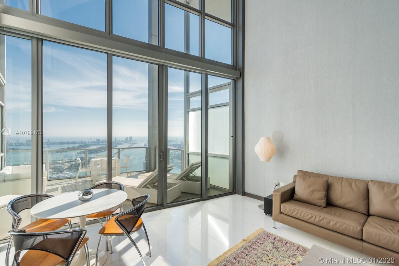 PRICE REDUCED $131 K, SELLER WANTS OFFERS!! Some of the best views in Miami are from this oversized 1BD+Den/2BA at Marquis Residences. Perfectly situated 63 floors up, this 1,675 S.F. custom designed unit has been featured in Luxe Magazine highlighting its modern style. This one of a kind PH features a stunning oversized terrace, 20 FT ceilings with a 20FT wall of glass, custom kitchen cabinets, upgraded lighting though out, built ins, custom glass on the staircase and in the master bedroom and more. This unit is for the person who wants the very best, turnkey lifestyle. Marquis is a full-service luxury tower with newly renovated lobby and pool deck with sunrise and afternoon pools, newly renovated gym, spa, owners lounge and more.