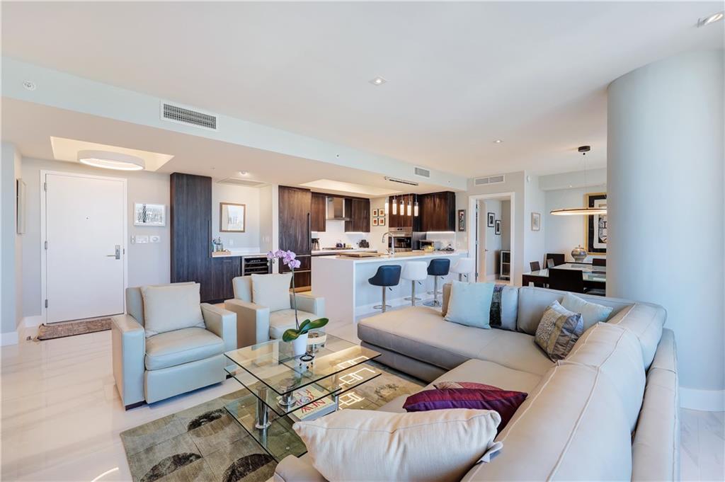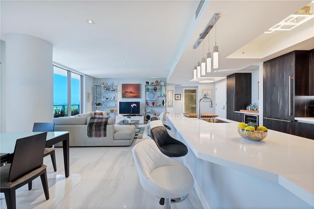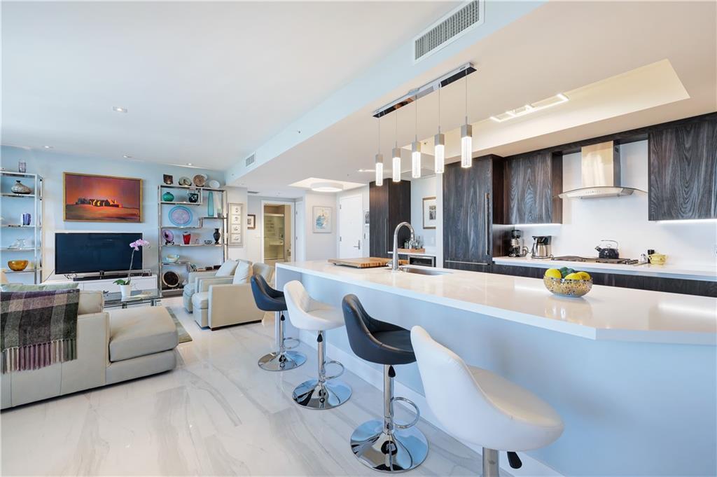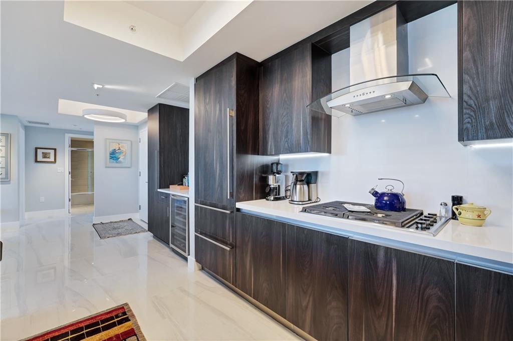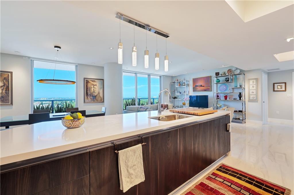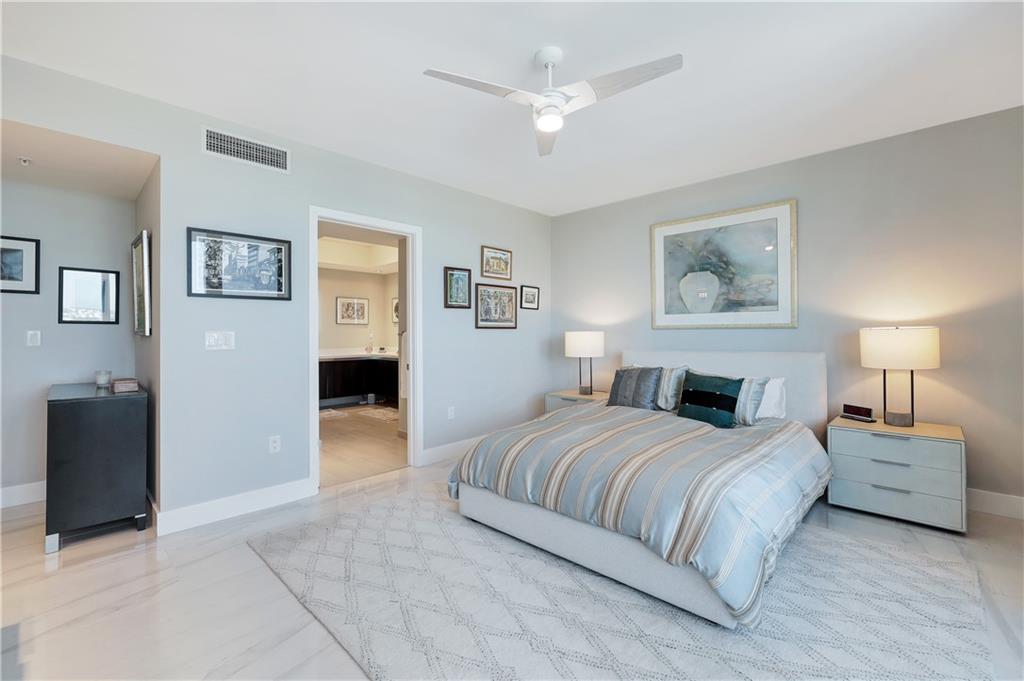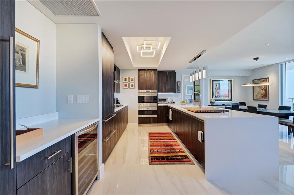 Seller has spared no expense in making this two bed, two bath city view condo a showpiece. Ceiling was lowered to allow for LED lighting in Living/Dining area and soffits in master also. High end fixtures installed with smart home control. Kitchen offers Sub Zero refrigerator/freezer, Wolf gas cooktop and stove, built in microwave and added wine bar and surrounding cabinetry. Waterfall quartz countertops. Built in drawers were installed for more use of cabinet space. 47 inch tile floors throughout. Over 56 feet of balcony with outdoor built in BBQ grill and sweeping city views. Master bedroom features walk in closet, master bath with walk in shower and separate tub, lots of counter space. Riva offers 5 star amenities. Pool, Spa, fitness, front desk, all in a zen like atmosphere.