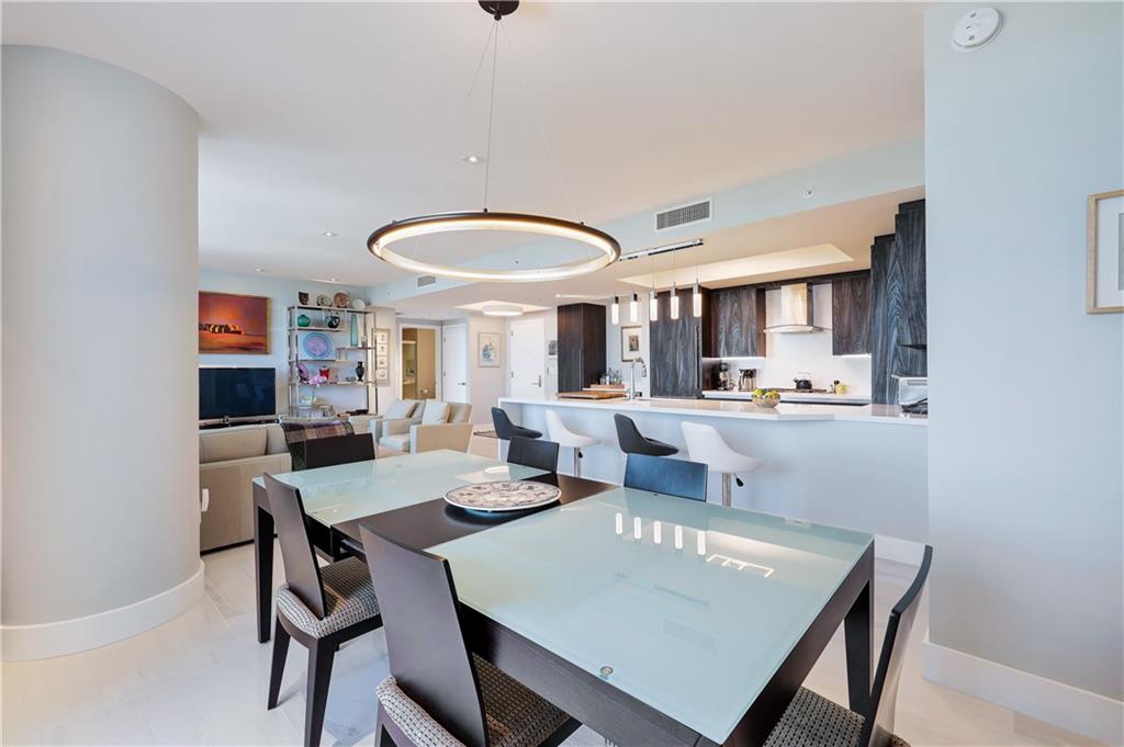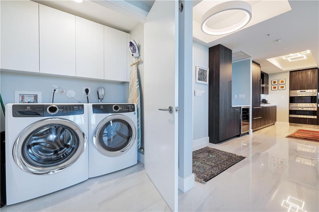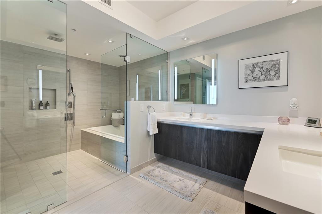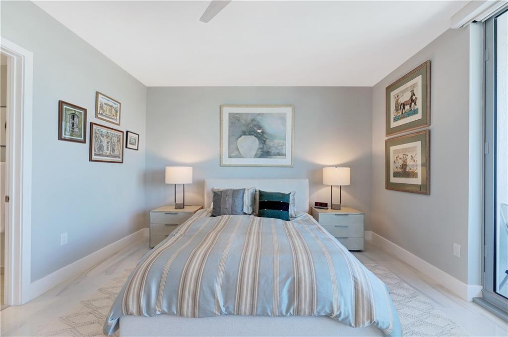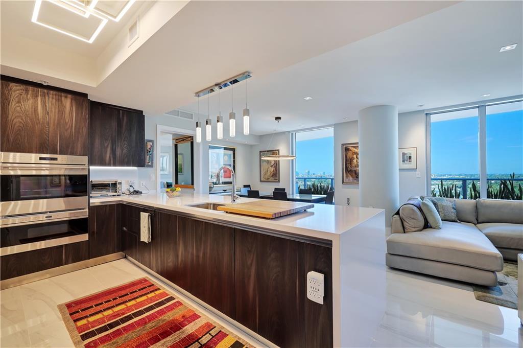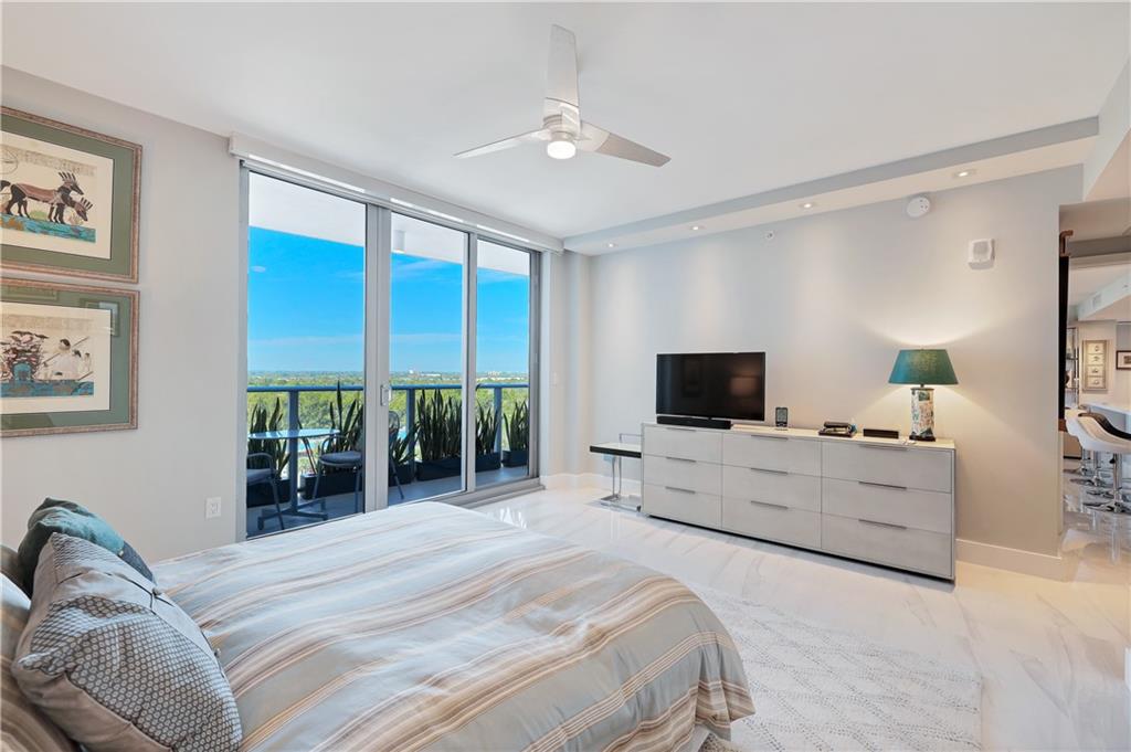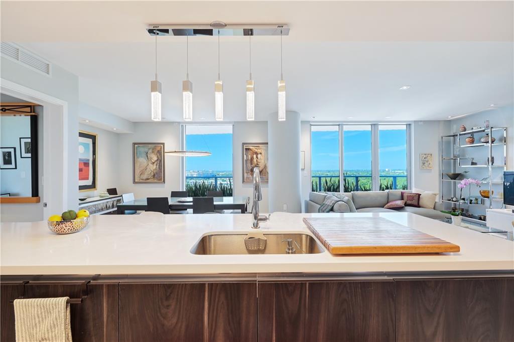 Seller has spared no expense in making this two bed, two bath city view condo a showpiece. Ceiling was lowered to allow for LED lighting in Living/Dining area and soffits in master also. High end fixtures installed with smart home control. Kitchen offers Sub Zero refrigerator/freezer, Wolf gas cooktop and stove, built in microwave and added wine bar and surrounding cabinetry. Waterfall quartz countertops. Built in drawers were installed for more use of cabinet space. 47 inch tile floors throughout. Over 56 feet of balcony with outdoor built in BBQ grill and sweeping city views. Master bedroom features walk in closet, master bath with walk in shower and separate tub, lots of counter space. Riva offers 5 star amenities. Pool, Spa, fitness, front desk, all in a zen like atmosphere.