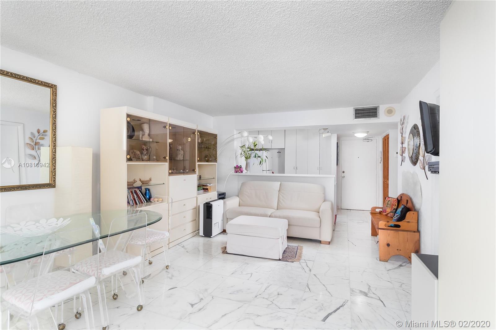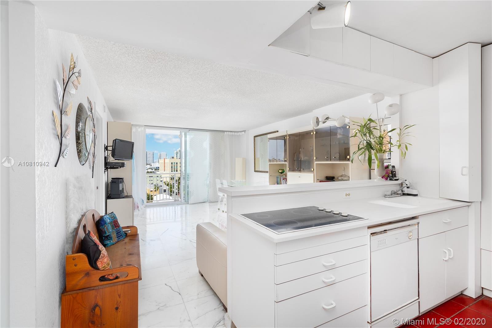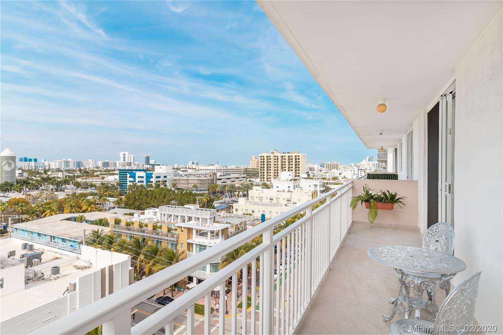Unobstructed sunset & city skyline views from this fantastic high floor unit w/covered parking in popular Oceanfront South of 5th Street condo! Great floor plan with open kitchen w/flat top range & double sink, beautiful large bathroom w/bidet, marble floors throughout, great closet space & large oversized balcony. Sunny bright unit with incredible views of downtown, the sunset & people watching on Ocean Drive. New a/c, new on-demand water heater, furniture included, impact sliding door & covered parking space- this one has it all. In oceanfront building with low maintenance fee, newly remodeled heated pool, community room with WiFi and new elevators in process. Seller is moving to Montreal after her family has owned unit for many years and she has priced it to sell quickly.