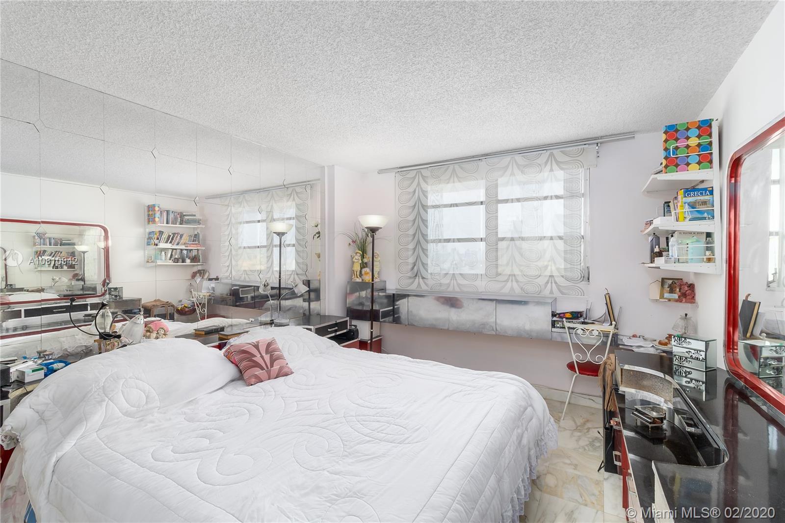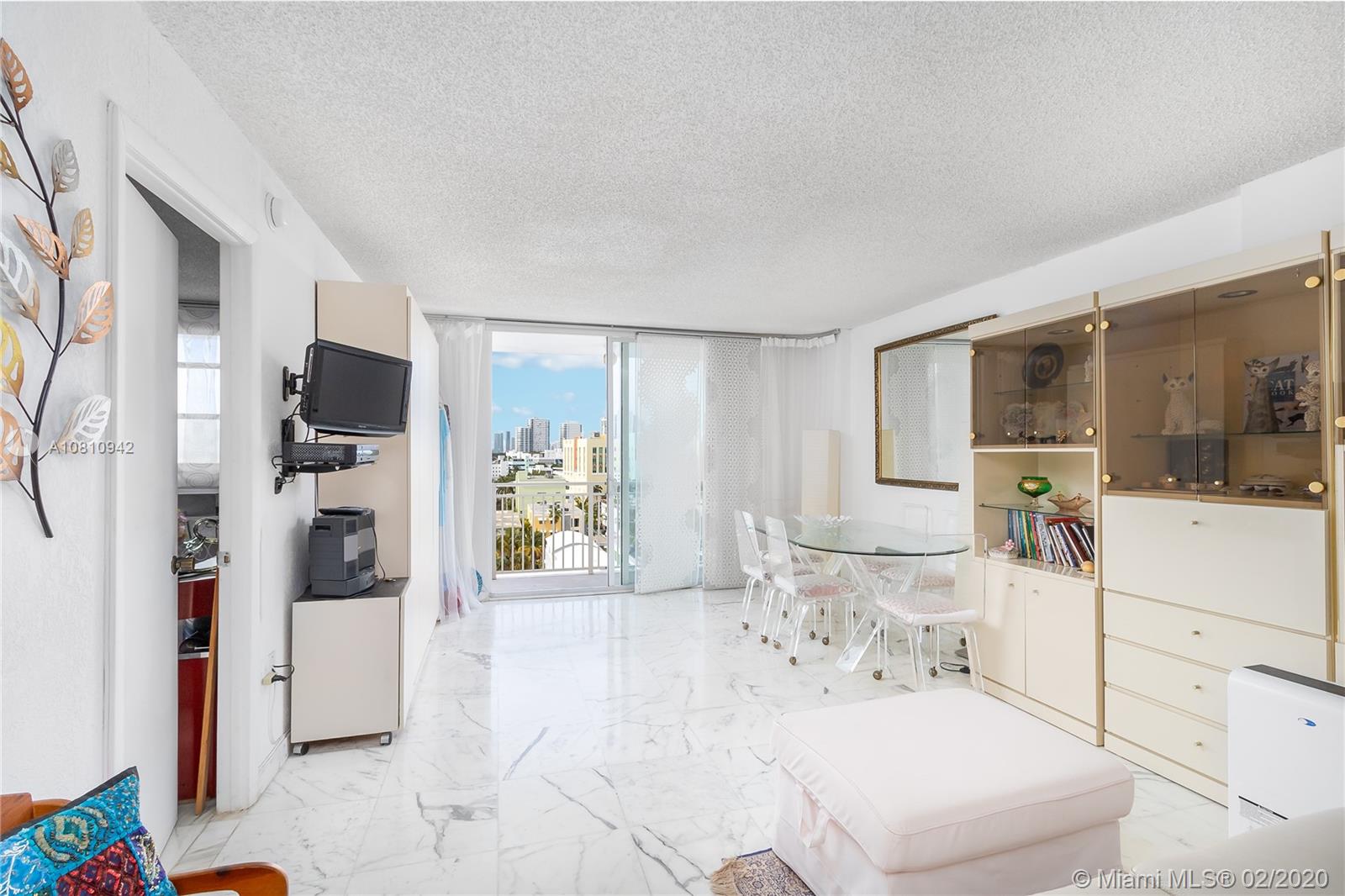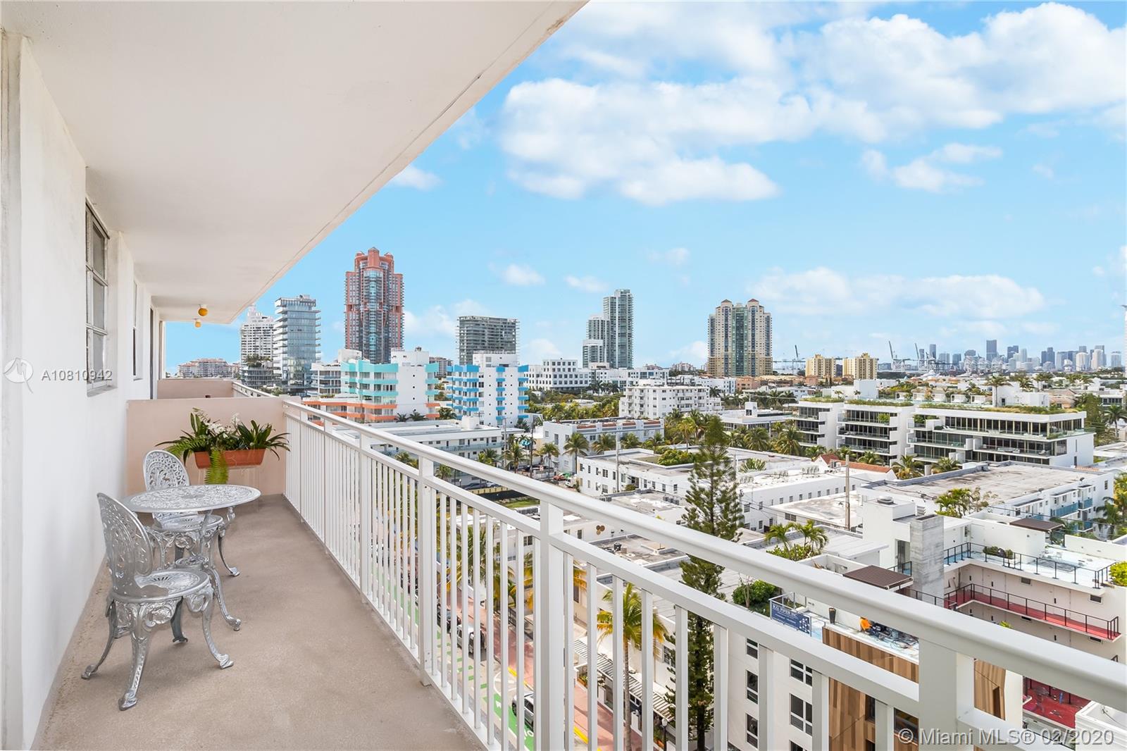 Unobstructed sunset & city skyline views from this fantastic high floor unit w/covered parking in popular Oceanfront South of 5th Street condo! Great floor plan with open kitchen w/flat top range & double sink, beautiful large bathroom w/bidet, marble floors throughout, great closet space & large oversized balcony. Sunny bright unit with incredible views of downtown, the sunset & people watching on Ocean Drive. New a/c, new on-demand water heater, furniture included, impact sliding door & covered parking space- this one has it all. In oceanfront building with low maintenance fee, newly remodeled heated pool, community room with WiFi and new elevators in process. Seller is moving to Montreal after her family has owned unit for many years and she has priced it to sell quickly.