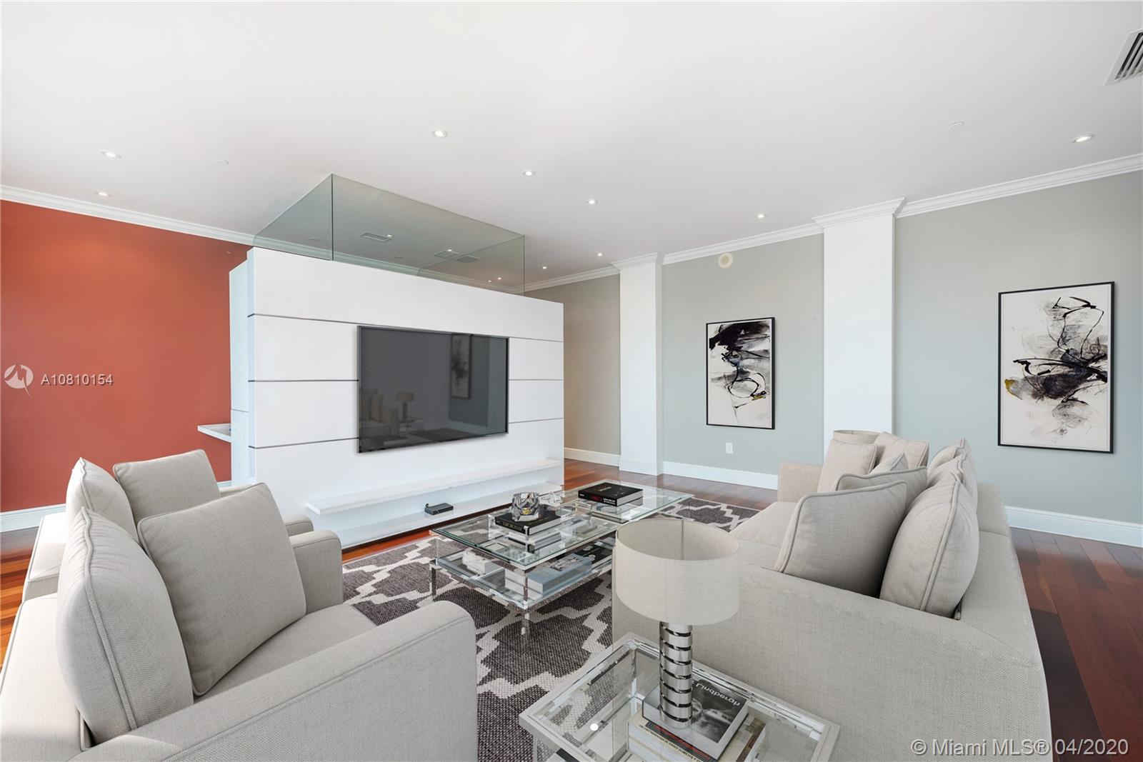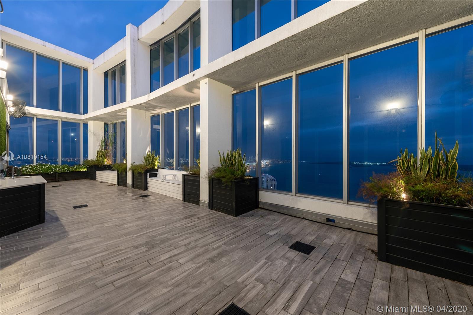 Perched atop Icon Brickell, rarely available two-level corner penthouse on the 57th floor. Spectacular views over Miami Beach, Fisher Island, Key Biscayne and the Port of Miami. 2,538 sq ft oceanfront penthouse with indoor and outdoor living space sprawls over two stories, with oversized terraces and sweeping panoramic Biscayne Bay and city views. Penthouse 5701 offers three-bedrooms, three-baths and powder room, kitchen with Italian cabinetry, master suite with walk-in closets, en-suite bathroom with spa bath. Second floor features family room and an oversized terrace with wet bar - perfect for entertaining. Philippe Starck designed Icon Brickell offers world-class amenities including three pools, full-service spa, fitness center, 24-hour concierge and on-site fine dining restaurants.